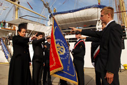 Zgodnie z tradycją, studenci, którzy w czasie rekrutacji zdobyli najwyższe wyniki: Łukasz Urbaniak  (WN), Andrzej Konkel (WM),  Robert Bieluszewski (WE) oraz   Monika Kędzierska (WPiT) ślubowali – w imieniu wszystkich studentów I roku - na sztandar Akademii Morskiej w Gdyni.