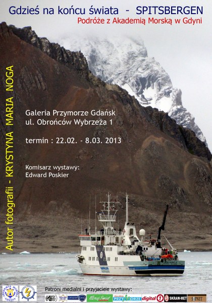 22 lutego 2013 r. o godzinie 17 (piątek) w Galerii Przymorze odbędzie się otwarcie wystawy fotografii autorstwa dr inż. Krystyny Marii Noga, pracownika naukowo-dydaktycznego AMG, wykonanych w czasie pobytu na Spitsbergenie. Jest to relacja z wypraw na statku szkolno - badawczym Horyzont II. Autorka i władze Wydziału Elektrycznego AMG zapraszają do odwiedzenia wystawy w dniach od 22 lutego do 8 marca 2013.