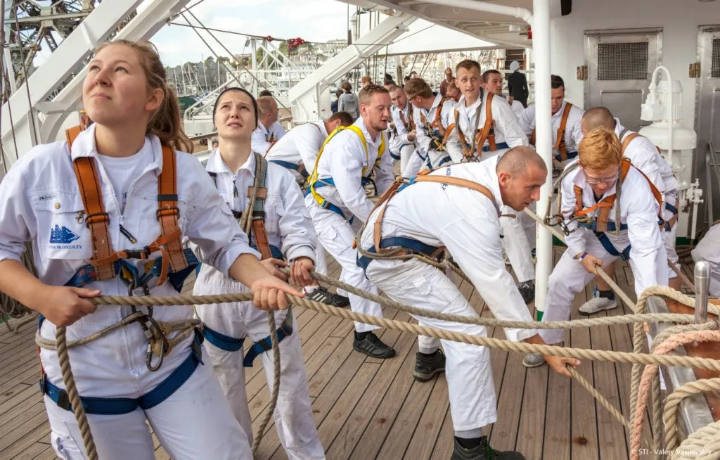 Fregata Akademii Morskiej w Gdyni przewodzi stawce żaglowców klasy A na trasie wyścigu Falmouth - Royal Greenwich Tall Ships Regatta 2014. Na pokładzie praktykę morską przechodzą studenci Wydziału Mechanicznego AMG, wspierani przez 3 studentów Wydziału Nawigacyjnego w roli młodszych instruktorów i jedynaczkę z WPiT. Szkolną załogę uzupełnia 19 młodych Brytyjczyków zaokrętowanych na trasę Falmouth - Greenwich. "Dar" od 27 sierpnia uczestniczył, w organizowanym przez Sail Training International, zlocie żaglowców w Falmouth. Studenci z sukcesami brali udział w rywalizacji sportowej załóg. Obok medali w grach zespołowych, przywiozą także zaszczytną nagrodę "Changing Young People's Lives", za sportowego ducha i postawę fair play podczas zawodów.