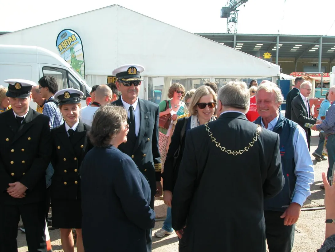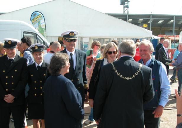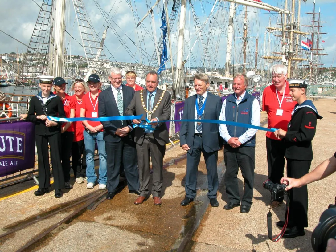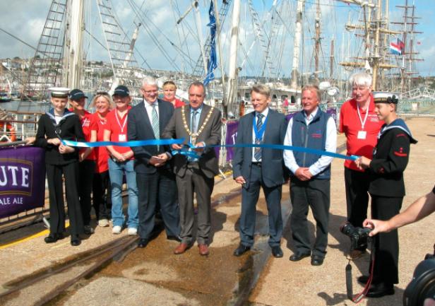 Falmouth, czwartek 28 sierpnia - oficjalne otwarcie Falmouth Tall Ships Regatta. Uroczystego przecięcia wstęgi dokonał Mayor Falmouth wraz z  Chairmanem Sail Training International. W ceremonii uczestniczyła delegacja "Daru Młodzieży" - nasi studenci robią znakomite wrażenie - wszyscy chcą się z nimi fotografować.