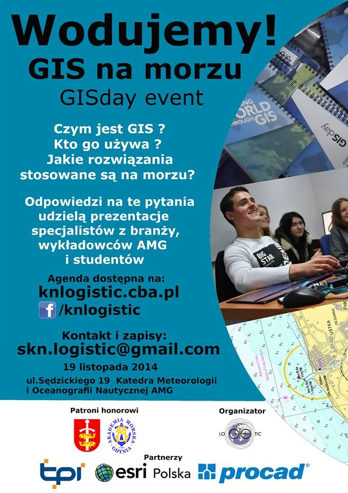 Więcej informacji i harmonogram znajdziesz na stronie organizatora: www.knlogistic.cba.pl, w zakładce GISday 2014 lub obserwując wydarzenie na facebooku. Jeśli masz pytania dotyczące wydarzenia napisz e-mail na adres: skn.logistic@gmail.com