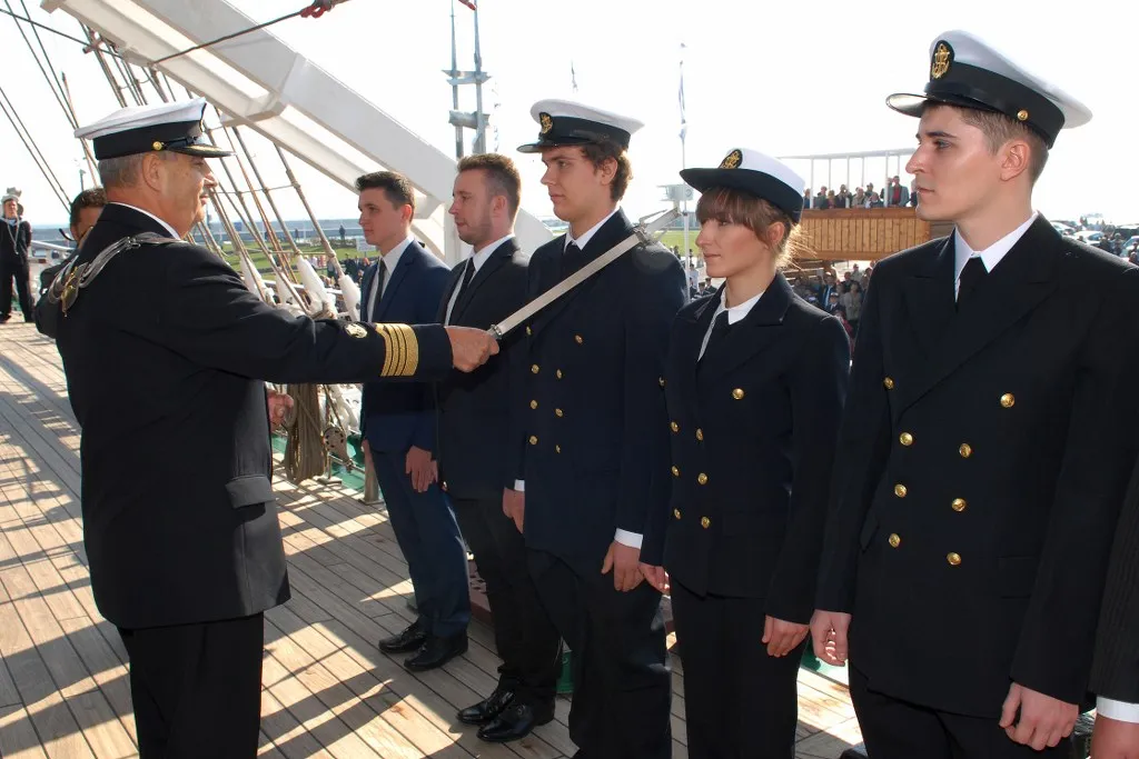 Czworo studentów, którzy uzyskali najlepsze wyniki w czasie rekrutacji, ślubowało – w imieniu wszystkich studentów – na sztandar Akademii Morskiej: Marta Wojtczak (WN), Eryk Wojdyła (WM), Leszek Dybowski (WE) oraz Agnieszka Owczarek (WPiT).