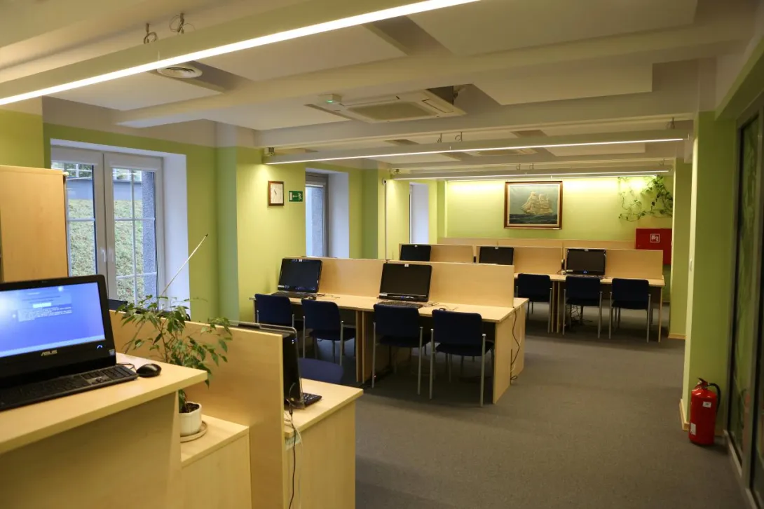 SALA MULTIMEDIALNA stworzyła nowe możliwości prowadzenia szkoleń i samokształcenia bibliotekarzy poprzez szkolenia on-line. W tej sali mogą odbywać się także spotkania i konferencje.