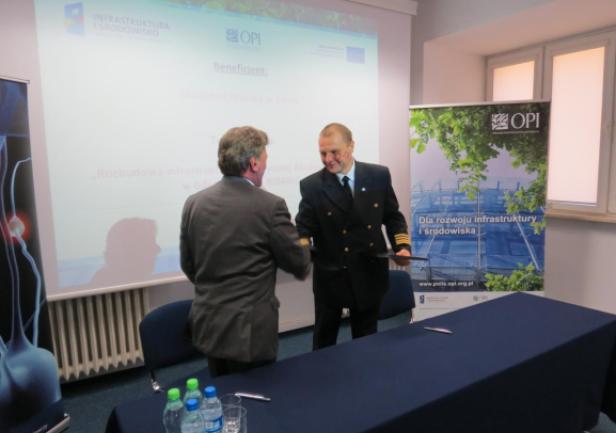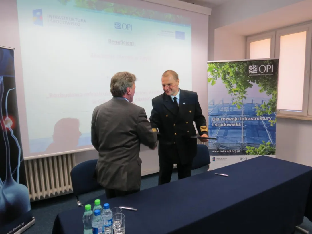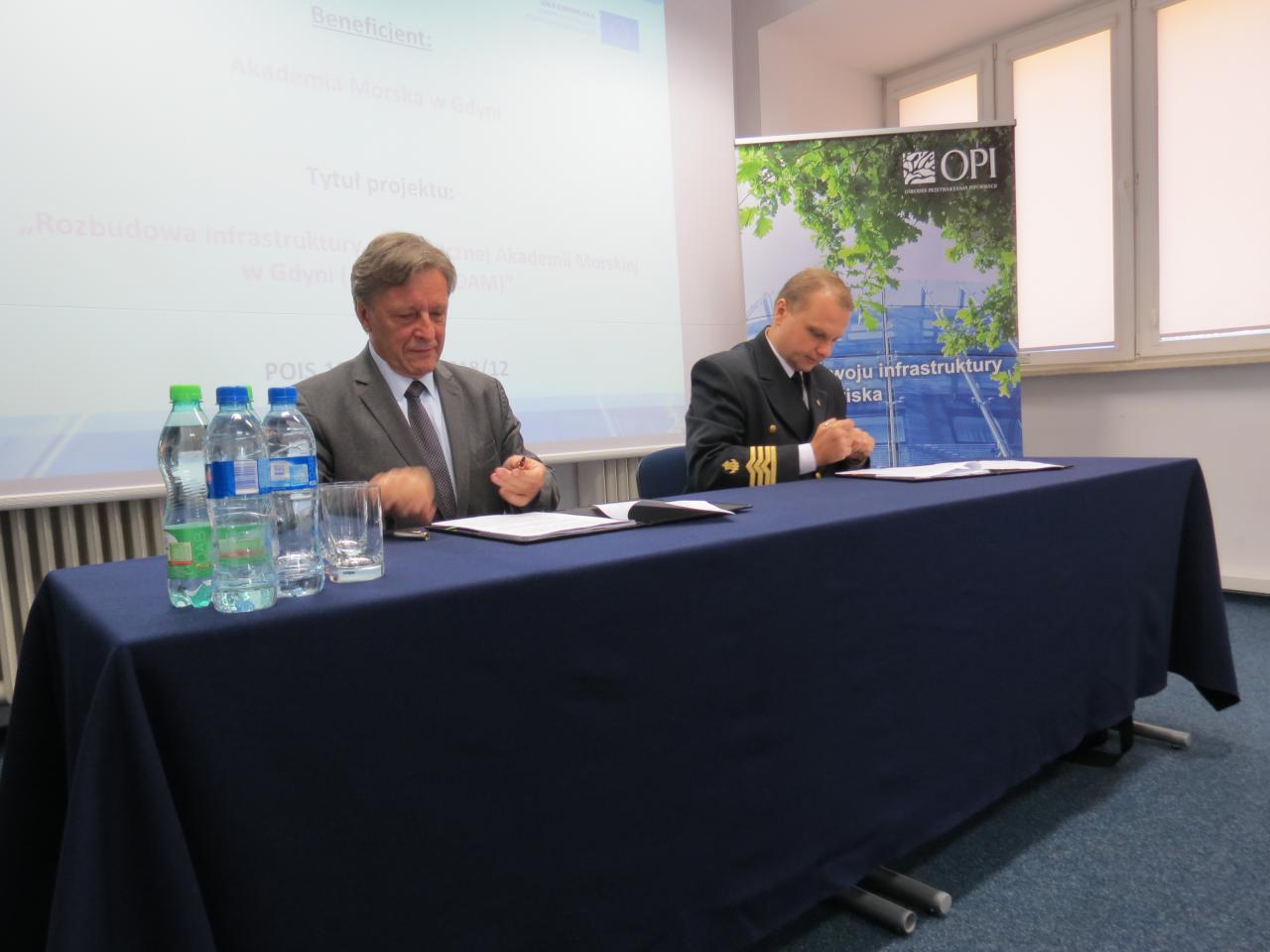 Akademia Morska w Gdyni otrzyma ponad 30 mln zł z Programu Operacyjnego Infrastruktura i Środowisko na rozbudowę infrastruktury dydaktycznej. W siedzibie Ośrodka Przetwarzania Informacji - Państwowego Instytutu Badawczego Umowę na dofinansowanie podpisali dr Olaf Gajl, dyrektor OPI PIB oraz Sławomir Polański - Kanclerz AMG.