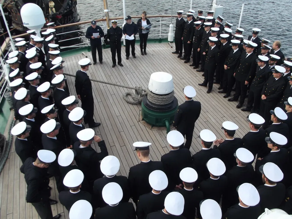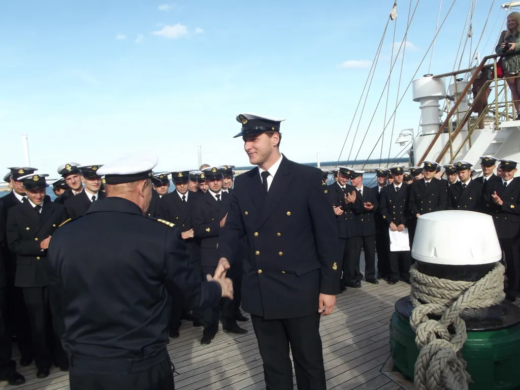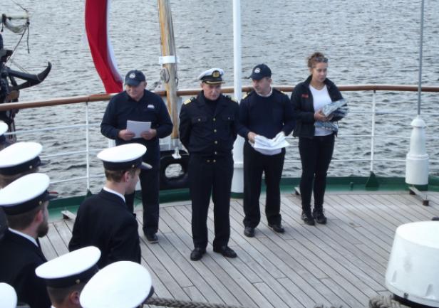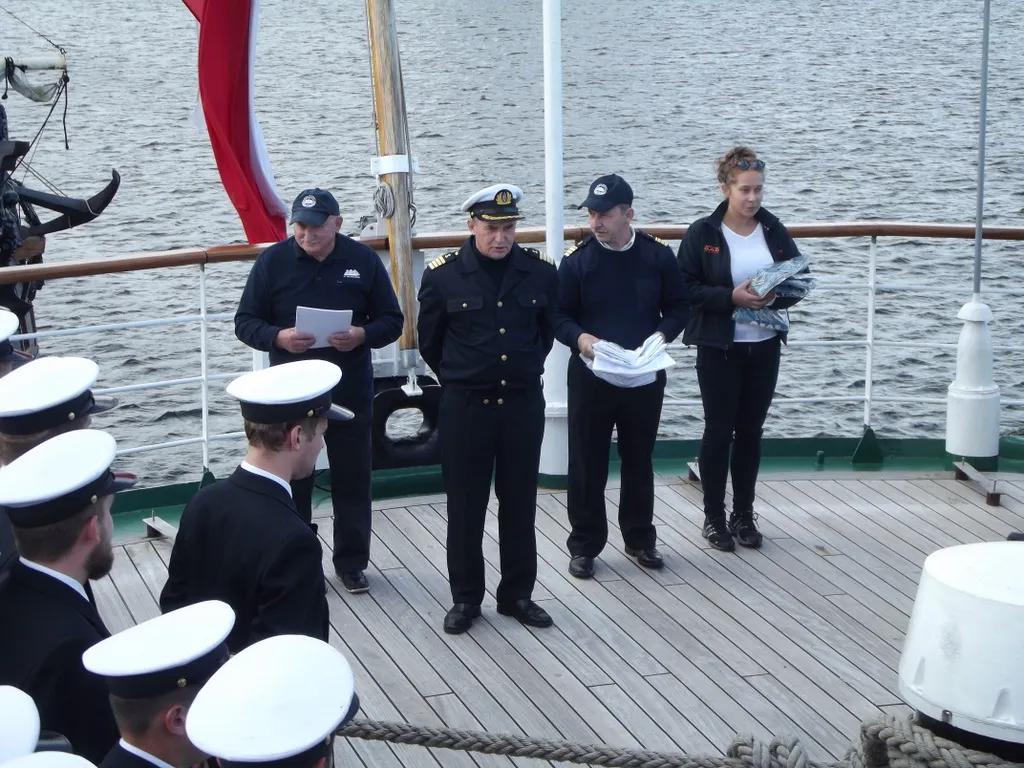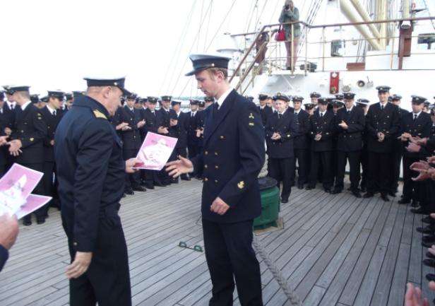 Tradycyjną zbiórką na rufowym pokładzie, rozdaniem dyplomów zaliczenia praktyk, z wyróżnieniem najlepszych studentów, komendant żaglowca kpt.ż.w. Marek Menke zakończył sezon morskich praktyk na "Darze Młodzieży".