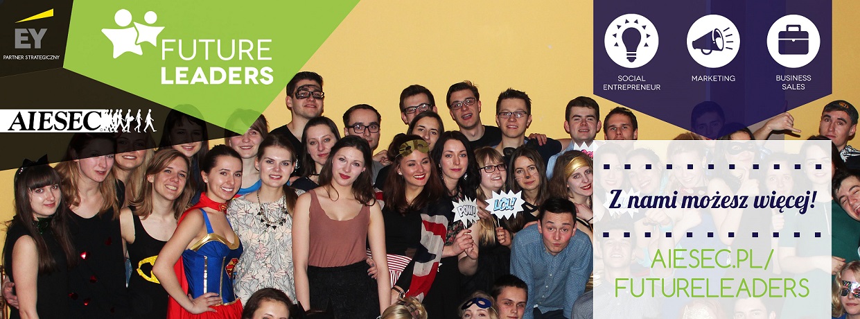 Więcej informacji o programie Future Leaders znajdziesz na www.aiesec.pl/futureleaders oraz na Facebooku: https://www.facebook.com/aiesec.ug Nie musisz być studentem UG aby do nas dołączyć. Organizacja jest otwarta dla osób ze wszystkich uczelni i kierunków.