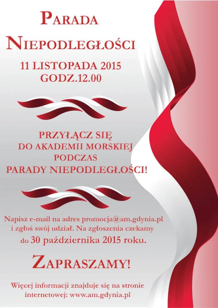 Parada Niepodległości jest corocznym świętem podczas, którego Akademia Morska w Gdyni ma okazję do promocji swojego wizerunku, jako instytucji przyjaznej lokalnej aktywności.