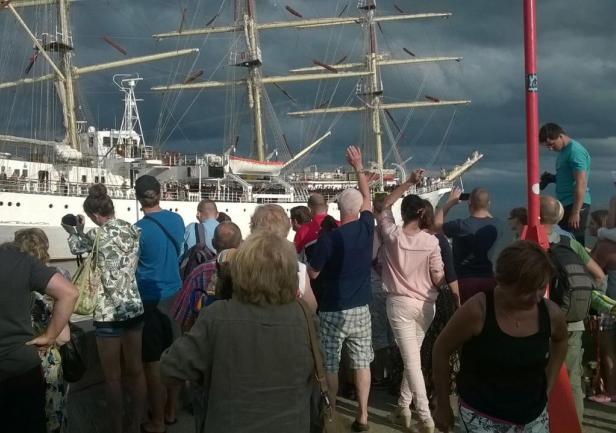 Działo się wszystko w sobotę 18 lipca - o 8 rano zakończył swą 35. podróż na Spitsbergen "Horyzont II", o 18.00 pożegnaliśmy "Dar Młodzieży" wyruszający w kolejną podróż szkoleniową, tym razem z grupą 134 studentów I roku Wydziału Nawigacyjnego AMG.