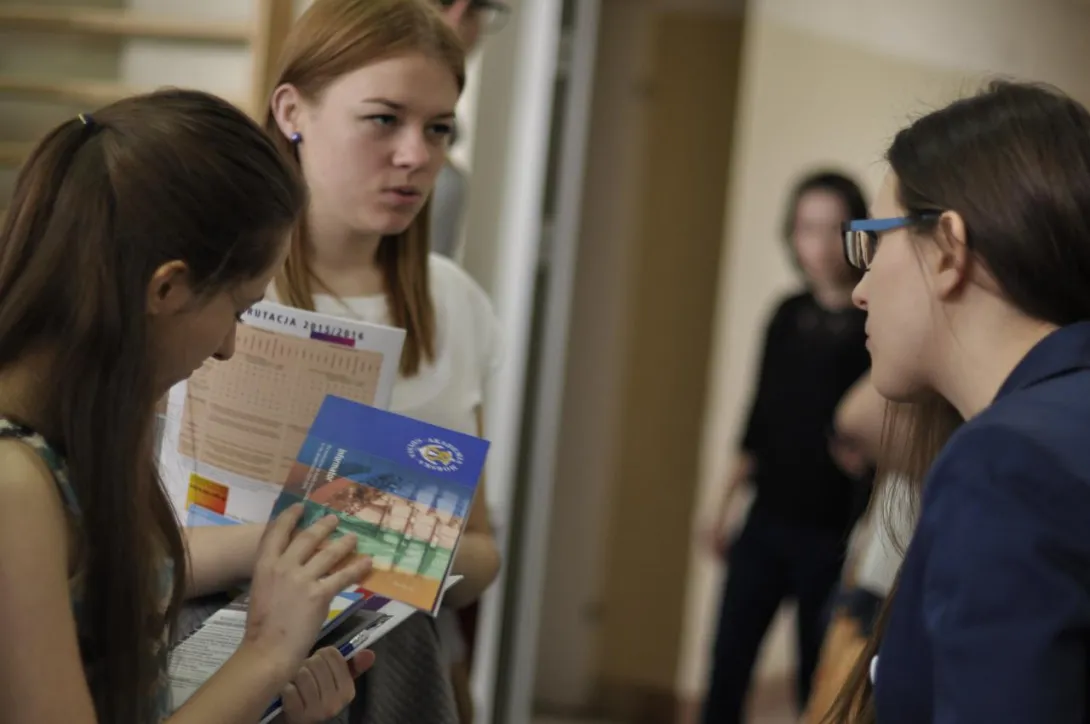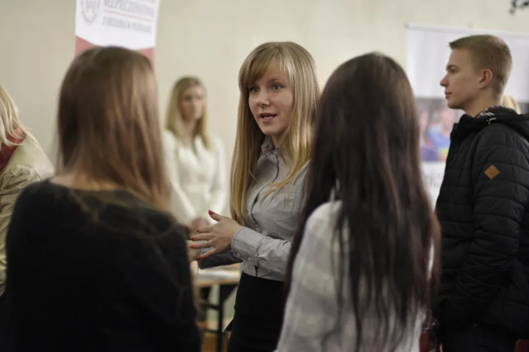 Uczniowie szkół ponadgimnazjalnych z chęcią podchodzili do stoiska informacyjnego uczelni. Zadawali pytania dotyczące rekrutacji, oferty edukacyjnej, mundurów i warunków studiowania.