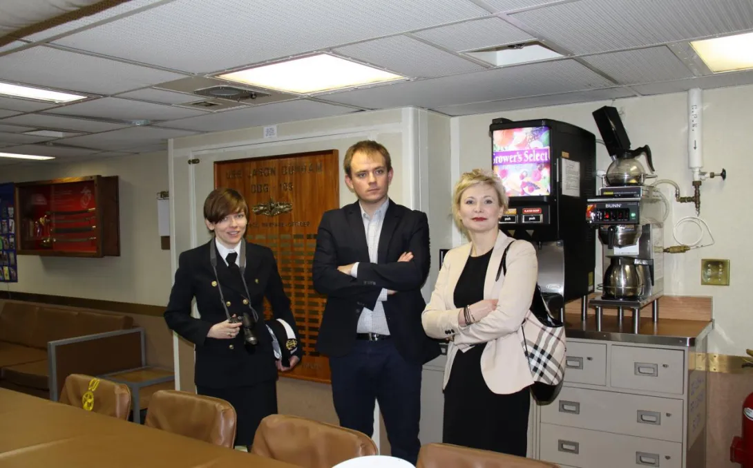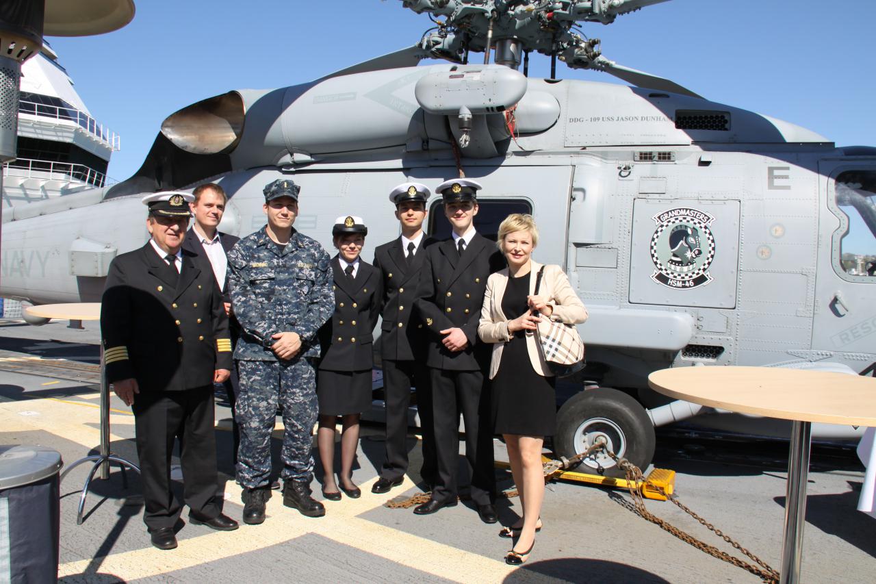 Reprezentacja Akademii Morskiej zaproszona została na amerykański okręt wizytujący Gdynię- niszczyciel rakietowy USS "Jason Dunham". W przyjęciu na pokładzie uczestniczyli: prorektor ds. morskich dr inż. kpt.ż.w. Henryk Śniegocki, kierownik Działu Armatorskiego Katarzyna Muszyńska, asystent w Katedrze Nawigacji Kamil Formela oraz troje studentów Wydziału Nawigacyjnego AMG