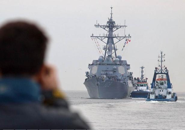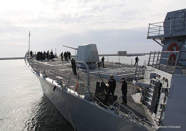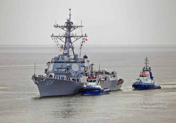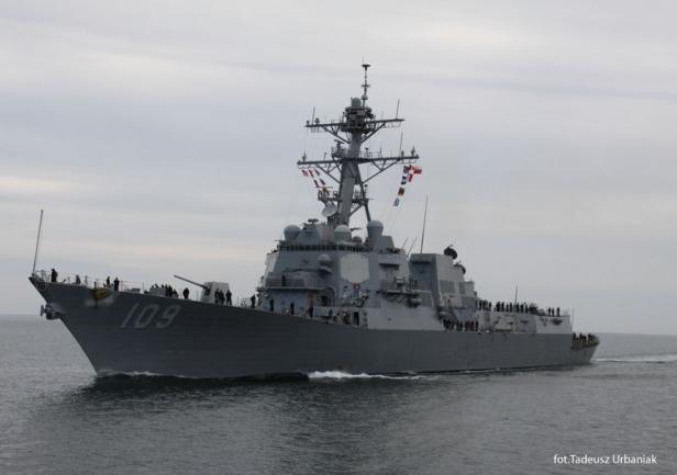 Podczas wizyty w Gdyni, dowódca okrętu komandor Darren T. Dugan spotkał się z przedstawicielami wojska i władz samorządowych. Załoga okrętu wzięła m.in. udział w uroczystościach 70. rocznicy zakończenia II wojny światowej 8 maja na Westerplatte. To był znaczący element wsparcia przez Amerykanów polityki polskiego rządu. A także wyraz realizacji postulatów przyjętych podczas ubiegłorocznego szczytu Sojuszu w Newport – czyli obecności sojuszników na wschodniej flance NATO.