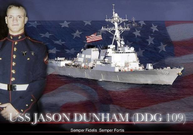 Nazwa okrętu – „Jason Dunham” – to nazwisko kaprala piechoty morskiej, który zginął w Iraku ratując życie dwóch innych żołnierzy korpusu marines. Otrzymał za to pośmiertnie najwyższe amerykańskie odznaczenie – Medal Honoru za odwagę.