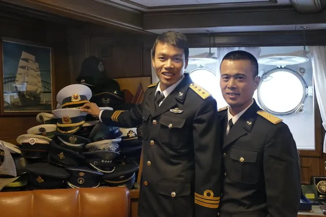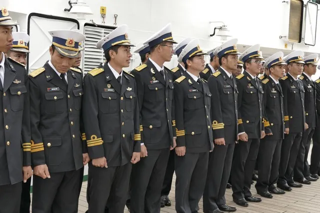 Pewną konsternację na "Darze" wzbudziły identyczne galony na rękawach wszystkich wietnamskich gości - od dowódcy okrętu po szeregowych marynarzy prezentowali trzy złote paski, górny z tzw. pętlą Nelsona, przypominające galony porucznika marynarki w Polskiej Marynarce Wojennej. Na wszelki wypadek wszystkich witano świstem trapowym. Okazuje się, że zróżnicowanie stopni odzwierciedlają naramienne pagony mundurów.