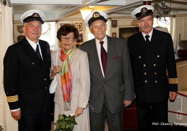 Zdjęcia kapitana Jana Sokołowskiego z uroczystości przyznania, na "Darze Pomorza", tytułu honorowego kapitana żeglugi wielkiej prof. Zdzisławowi Wajdzie - Cezary Spigarski i Tadeusz Lademann.