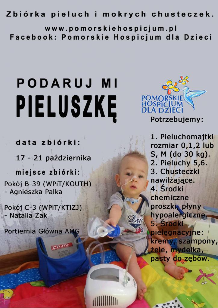 Zapraszamy wszystkich pracowników i studentów do przyłączenia się do zbiórki charytatywnej dla Pomorskiego Hospicjum dla Dzieci. Wszystkie szczegółowe informacje znajdują się na zamieszczonym plakacie. Akcja potrwa od 17 października do 21 października. Zbiórka prowadzona będzie zarówno w budynku głównym Uczelni przy ul. Morskiej, jak i w budynku Wydziału Nawigacyjnego.