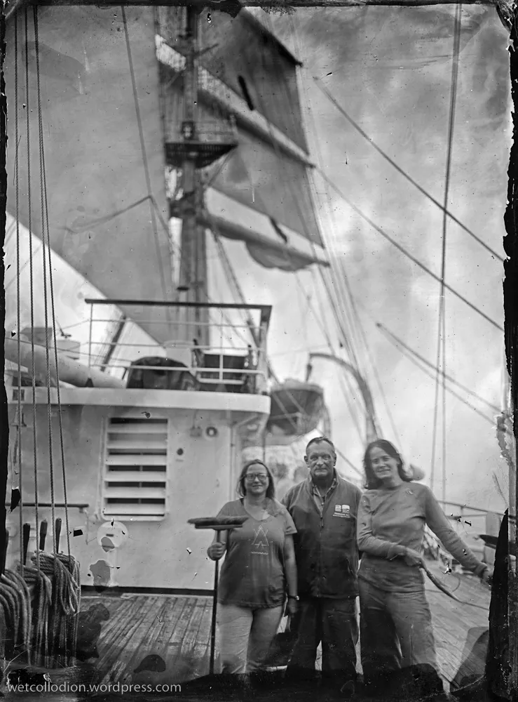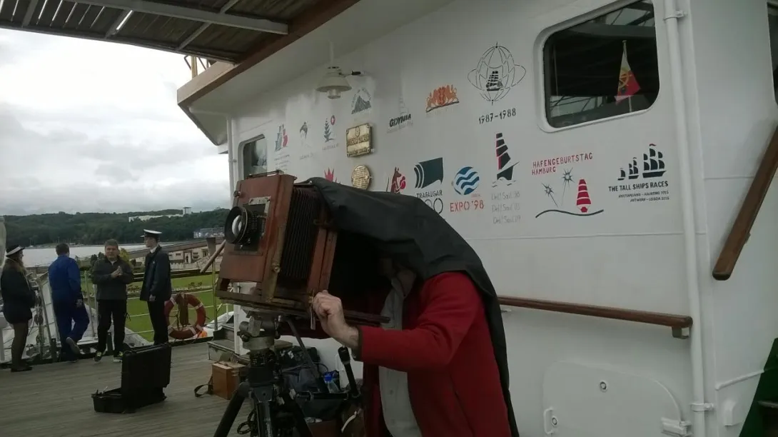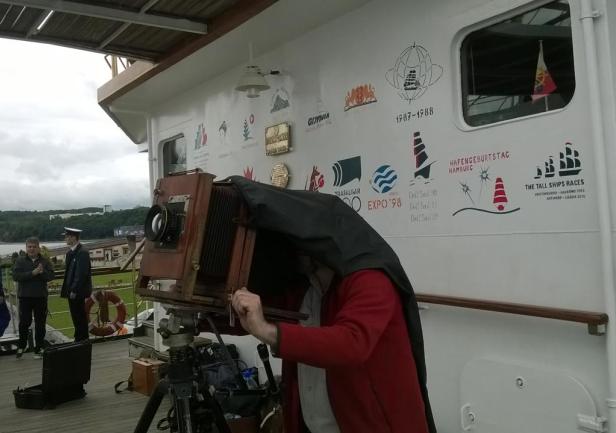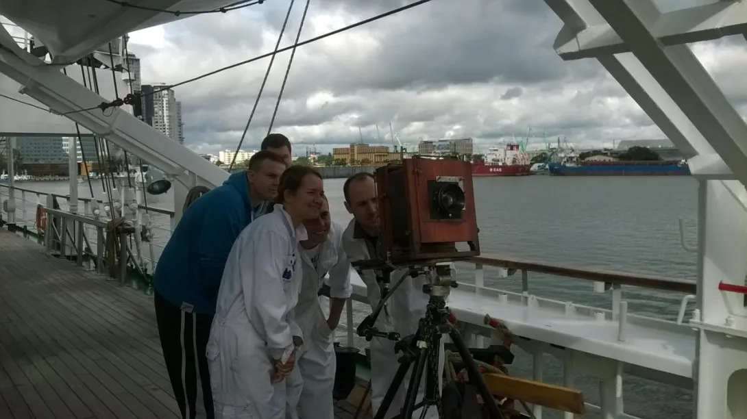 To był niezwykły eksperyment. Na jesienny rejs z Goteborga do Gdyni zaokrętował na „Dar Młodzieży” pan Andrzej Górski – człowiek zafascynowany XIX wieczną fotografią. Podczas rejsu wykonał, tradycyjną techniką tzw. mokrego kolodium z pionierskich lat fotografii , przy użyciu ponad 100-letniego aparatu, serię zdjęć ukazujących życie żaglowca.