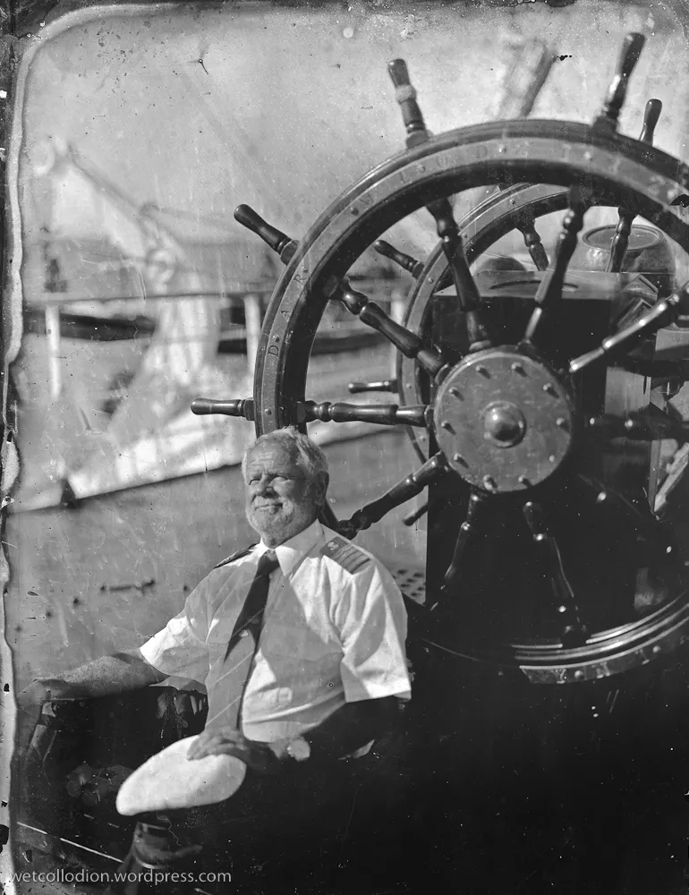 Pan Andrzej Górski musiał zatem zabrać na pokład, obok archaicznego aparatu ze statywem, przenośną ciemnię wraz ze wszystkimi niezbędnymi substancjami i osprzętem. Technika „mokrej płyty”, stosowana do uzyskiwania negatywów, dominowała w fotografii po roku 1850 przez ok. 30 lat. Dzięki wysokiej czułości daję możliwość odwzorowania najdrobniejszych szczegółów, jednak kilkusekundowe czasy naświetlania powodują, że fotografowane obiekty w ruchu – ludzie, przedmioty – tracą ostrość konturów. Gotowe czarno-białe fotogramy zachowują natomiast niepowtarzalną plastykę i urok artystycznych grafik.