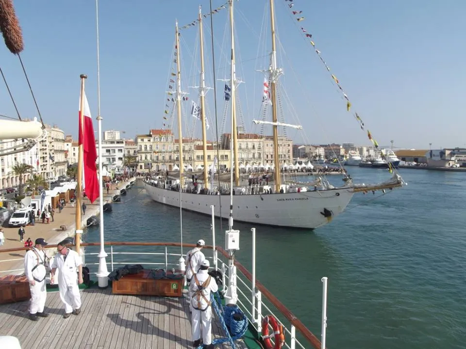Od 22 marca "Dar Młodzieży" cumuje we francuskim Sete - historycznym porcie świętującym 350 rocznicę założenia. Nasza fregata, na prośbę organizatorów rocznicowego zlotu, zaprezentowała się na wejściu pod pełnymi żaglami, następnie studenci powitali port w paradzie wantowej. W Sete kończą prawie dwumiesięczną praktykę morską studenci II roku Wydziału Mechanicznego AMG.