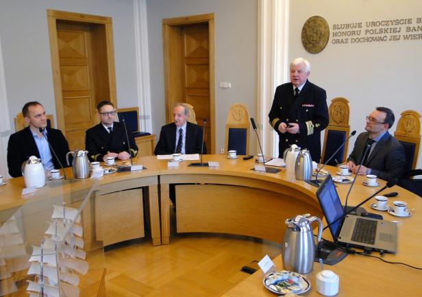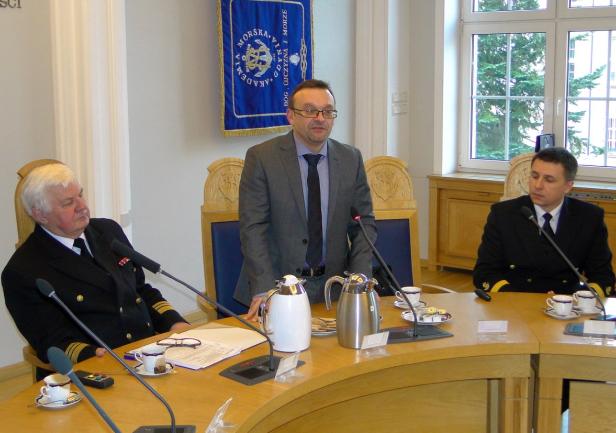 Spotkanie rozpoczęło się prezentacją dyrektora Adama Mikołajczyka, w której przedstawił on genezę oraz etapy definiowania ISP. Dyrektor Mikołajczyk podkreślał fakt, że w województwie pomorskim proces wyłaniania inteligentnych specjalizacji miał charakter oddolny, inny niż miało to miejsce w innych regionach kraju. W definiowaniu ich uczestniczyły środowiska biznesowe i naukowe, powiązane w partnerstwa i zainteresowane rozwijaniem określonych specjalizacji.  Pan Dyrektor podziękował za wyraźne zaangażowanie Akademii Morskiej w dotychczasowy proces.
