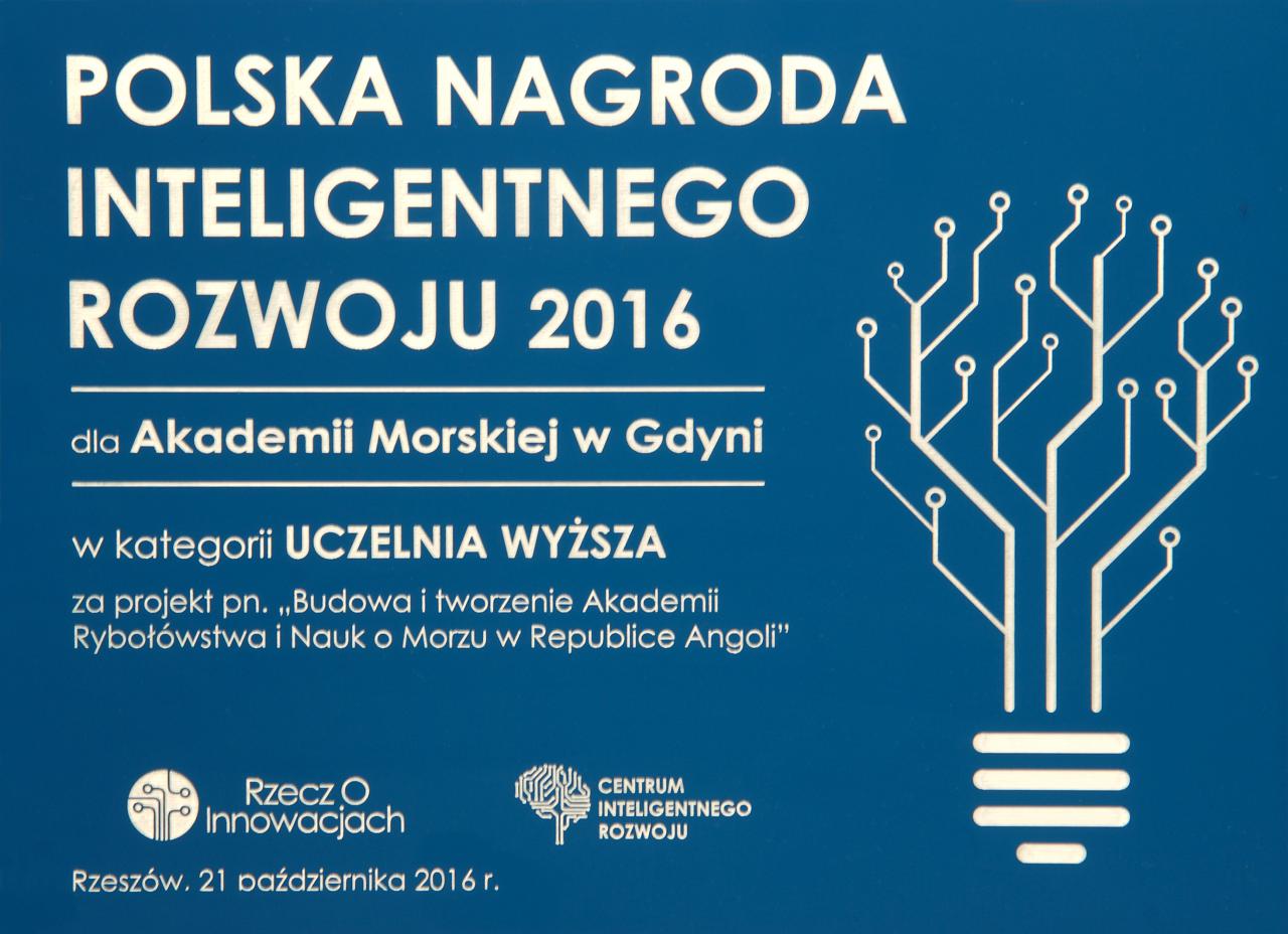 Podczas Forum Inteligentnego Rozwoju, które odbyło się 21 października 2016 roku w Centrum Wystawienniczo-Kongresowym w Jasionce k. Rzeszowa, wręczono Polskie Nagrody Inteligentnego Rozwoju 2016. Kapituła przyznała łącznie 60 nagród w sześciu kategoriach: Uczelnia Wyższa, Jednostka Naukowa, Innowacyjna firma, Jednostka Samorządu Terytorialnego, Państwowa Jednostka Budżetowa i Fundacje.