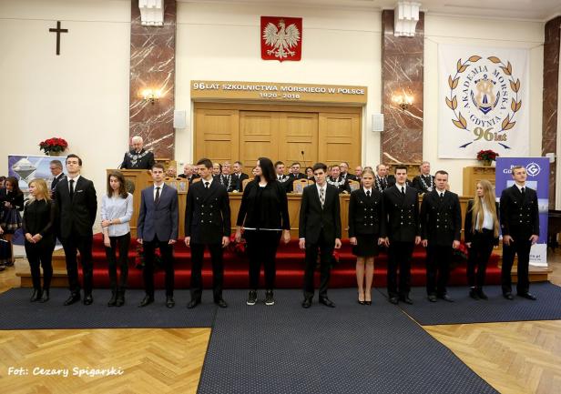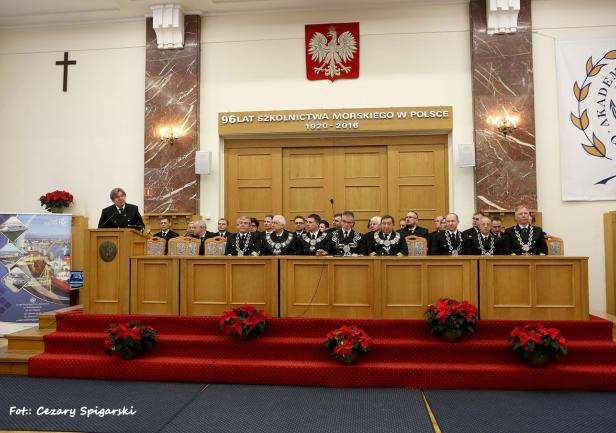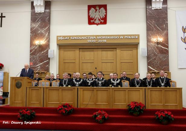W trakcie otwartego posiedzenia Senatu AMG, z okolicznościowym przemówieniem wystąpił JM Rektor prof. dr hab. inż. Janusz Zarębski. Zebranych zapoznano z treścią listu, jaki na ręce rektora z okazji 96 rocznicy polskiego szkolnictwa morskiego przesłał Wiceprezes Rady Ministrów, Minister Nauki i Szkolnictwa Wyższego, Jarosław Gowin. Zasłużonych pracowników uczelni udekorowano odznaczeniami resortowymi i medalami za długoletnią służbę.