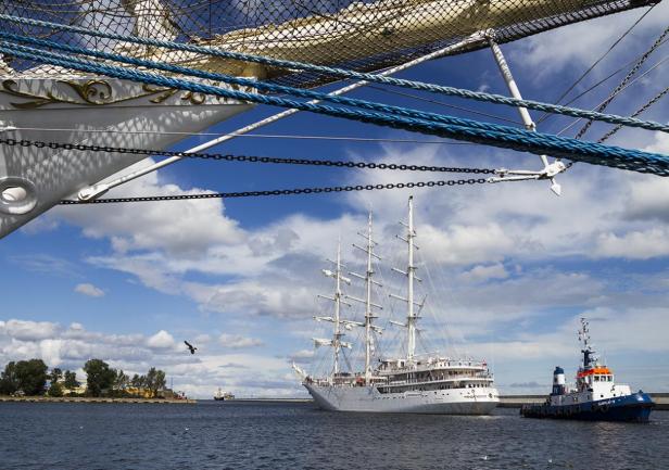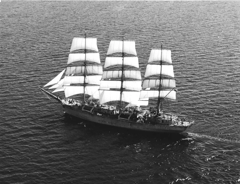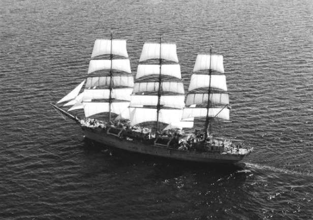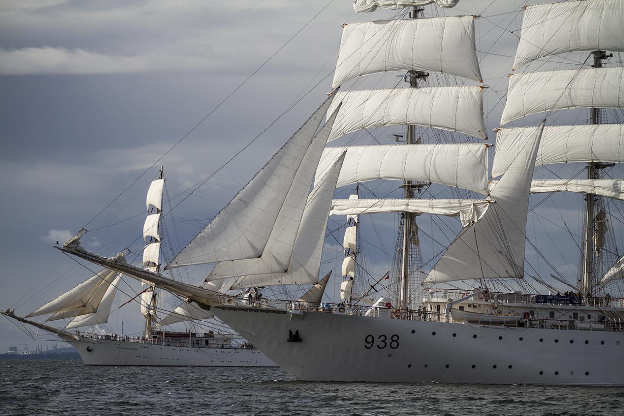 W poniedziałek 21 sierpnia obie fregaty wspólnie żeglowały - "Dar Młodzieży" (w towarzystwie naszego statku "Horyzont II") powitał młodszego brata u wejścia do Gdyni - pierwszego portu (poza Gdańskiem) na morskiej drodze algierskiego żaglowca.
