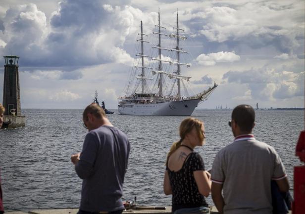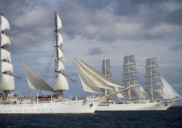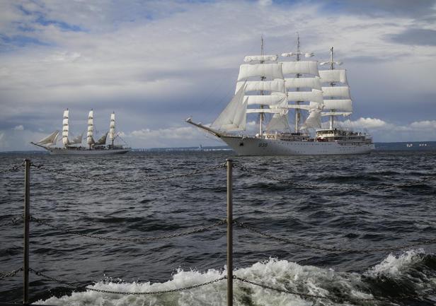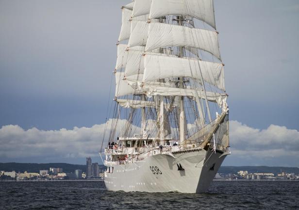 To było spotkanie dwóch epok - 35 lat temu to nowiutka fregata "Dar Młodzieży" przechodziła na wodach Zatoki Gdańskiej pierwsze pływania. W sierpniu 2017 na tym samym akwenie próby morskie przechodzi najnowszy i największy żaglowiec z gdańskim rodowodem - fregata "El Mellah" zbudowana dla Marynarki Wojennej Algierii.