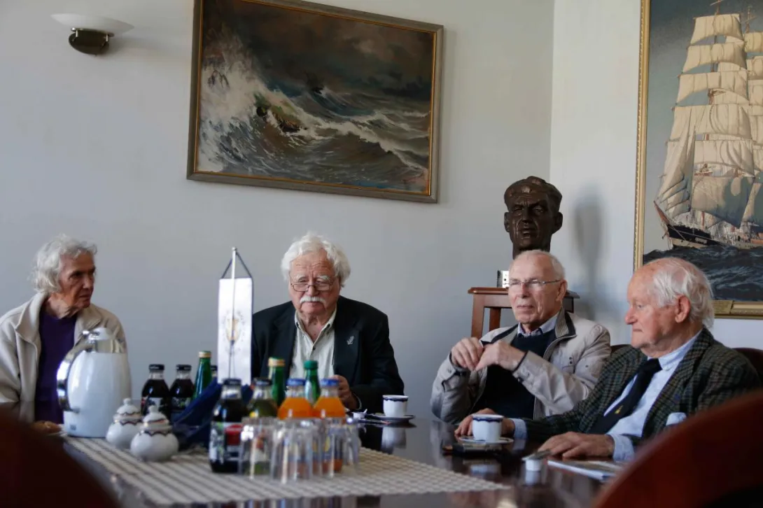 Jerzy Tarasiewicz wraz z żoną Ewą oraz przyjaciółmi - absolwentami Państwowej Szkoły Morskiej z 1956 -  kpt.ż.w. Marianem Koseckim (z załogi "Puchatka") oraz kpt.ż.w. Ryszardem Kornackim odwiedzili starą szkołę - wspominali spędzone tutaj lata - kolegów, profesorów. W małej sali Senatu podejmował naszych weteranów, w imieniu nieobecnego Rektora, dyrektor SDK AMG dr hab. inż. Kazimierz Witkowski. Niestety stan zdrowia uniemożliwił przyjazd do Gdyni drugiemu żeglarzowi z "Chatki Puchatków", kpt.ż.w. Januszowi Misiewiczowi. Umówili się na kolejne spotkanie w roku 2020 - roku stulecia uczelni i polskiego szkolnictwa morskiego.