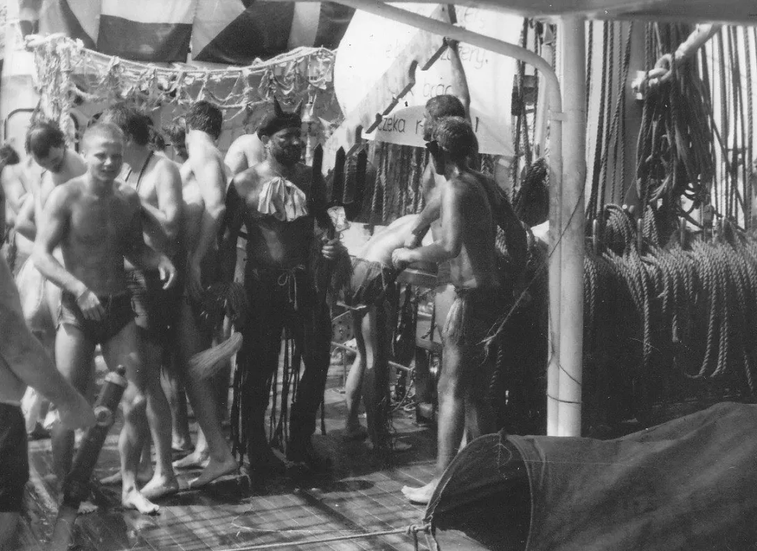 Tak świętowano 95 lat temu na "Lwowie" - a pierwszy równik "Dar Młodzieży" zaliczył 35 lat temu - 16 grudnia 1983 roku podczas słynnej podróży na zlot żaglowców Osaka 83. Prezentujemy wybór fotografii uczestników tamtej podróży. Ciekawe jak przywitano Neptuna podczas Rejsu Niepodległości. Wielokrotnie nasze żaglowce szkolne "Dar Pomorza", "Dar Młodzieży" przecinały linię równika - 26 lipca 2018 roku dopisujemy kolejny równikowy chrzest.