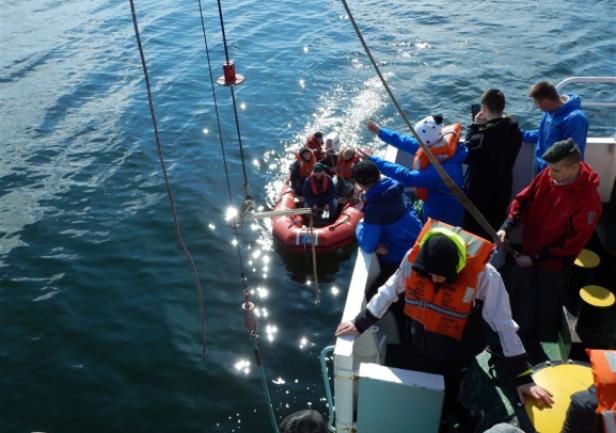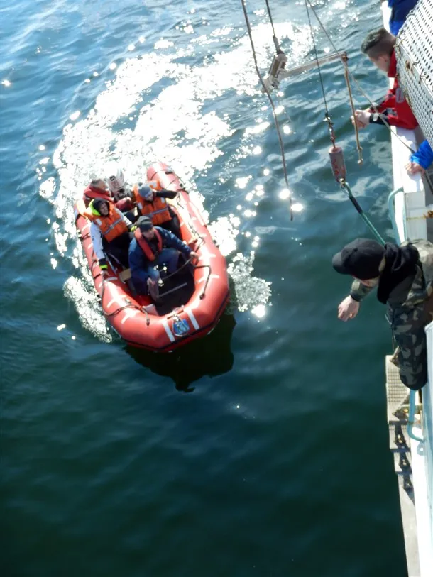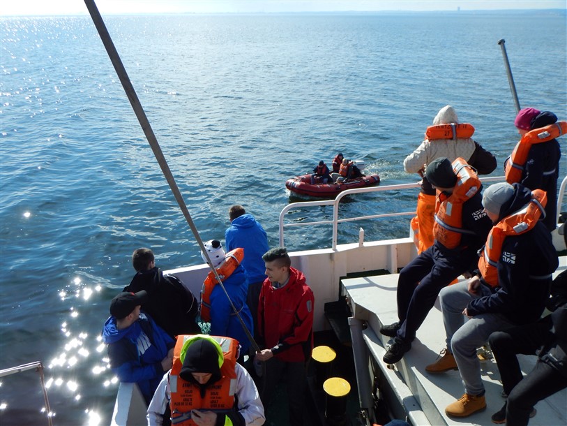 A potem ćwiczenia w manewrowaniu RIB-em (pontonem) dla wszystkich praktykantów. I jeszcze na koniec stara marynarska sentencja : "jedna ręka dla siebie, druga dla statku!"