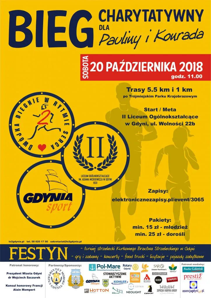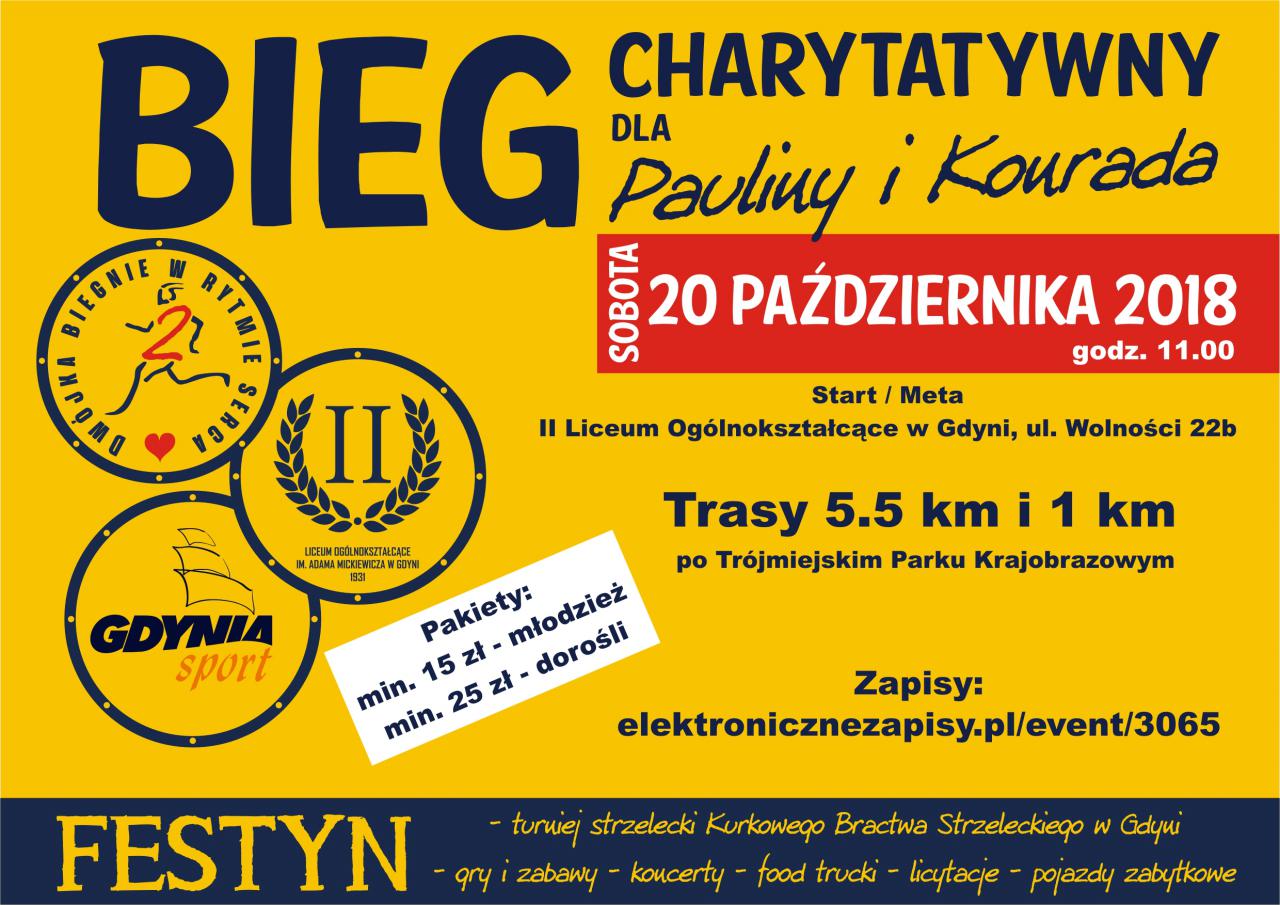 Bieg jest kontynuacją działań dobroczynnych skierowanych do uczniów II Liceum Ogólnokształcącego zmagających się z ciężką chorobą nowotworową - Pauliny, bardzo poważnie chorej na białaczkę oraz Konrada, który zmaga się z rzadką, nieoperacyjną chorobą nowotworową - mięsakiem kościopochodnym.