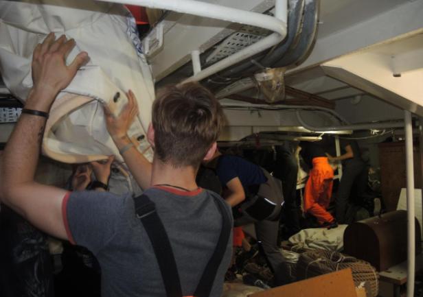 Gorący (delikatnie powiedziane) czas dla wszystkich związanych i odpowiedzialnych za wyjście "Daru" w Rejs Niepodległości. Po powrocie ze stoczni i zamustrowaniu pierwszych grup szkolnych ze Szczecina i Świnoujścia, ruszyły ostro prace związane z przyjmowaniem zaopatrzenia na rejs. Żywność dla ok. 160 osób, medykamenty, materiały sanitarne, wszystko co niezbędne w morskiej podróży. Permanentne testowanie nowo zamontowanych urządzeń, ostatnie prace serwisowe. Pod pokład do dziobowej żagielkoi załadowano komplet nowych, specjalnie zamówionych na ten rejs żagli. Sprawdzanie i porządkowanie dokumentów.