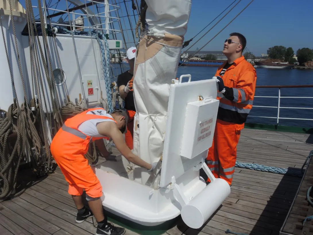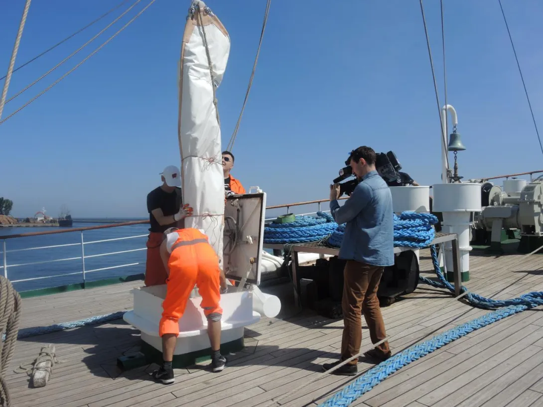 Młodzi praktykanci od wczoraj poznają smak codziennej marynarskiej służby. Prace bosmańskie, rozładunek zaopatrzenia, sztauowanie, pucowanie mosiądzów, służby na pokładzie i w kuchni. Na razie niewiele ma to wspólnego z wielką morską przygodą, ale już w niedzielne południe, poczują emocjonujący smak pożegnań, staną się uczestnikami, współtwórcami historii biało-czerwonej bandery.