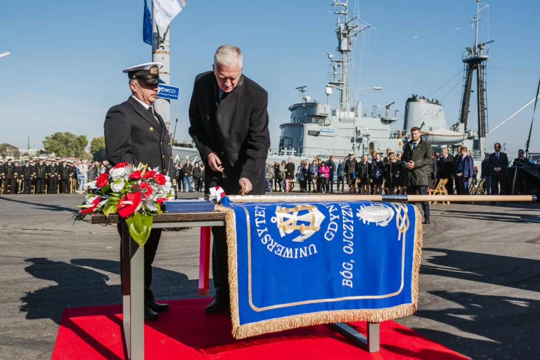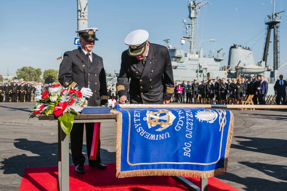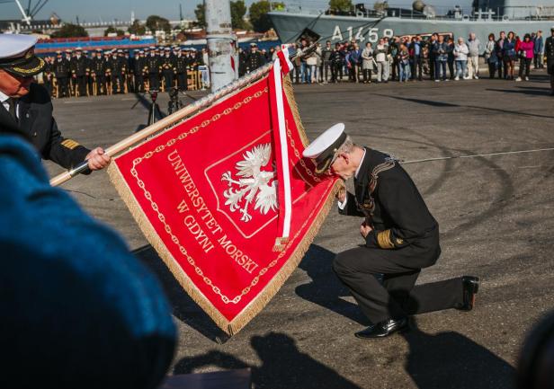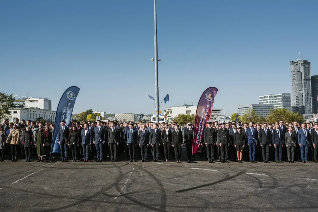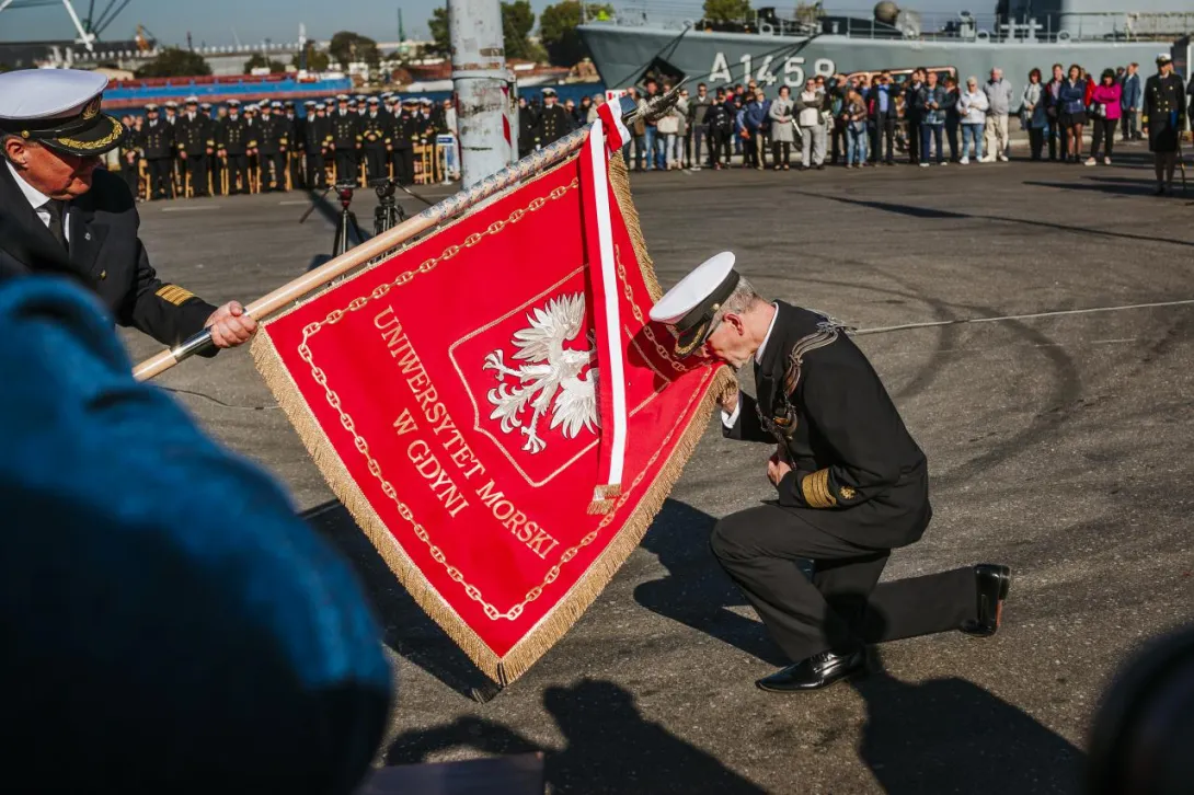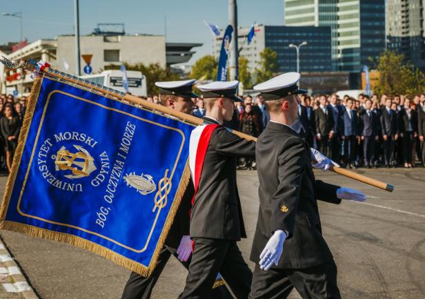 Czworo studentów, którzy uzyskali najlepsze wyniki w czasie rekrutacji, ślubowało – w imieniu wszystkich studentów I roku – na sztandar Uniwersytetu Morskiego w Gdyni. JM Rektor uroczyście pasował na studentów reprezentantów poszczególnych wydziałów.
