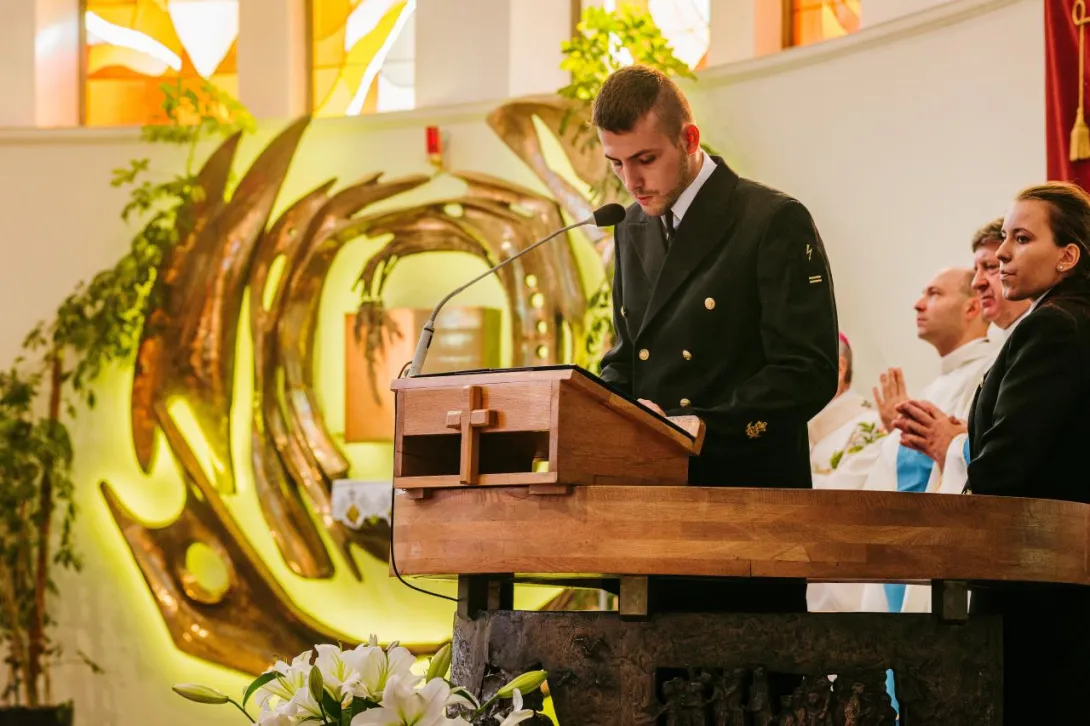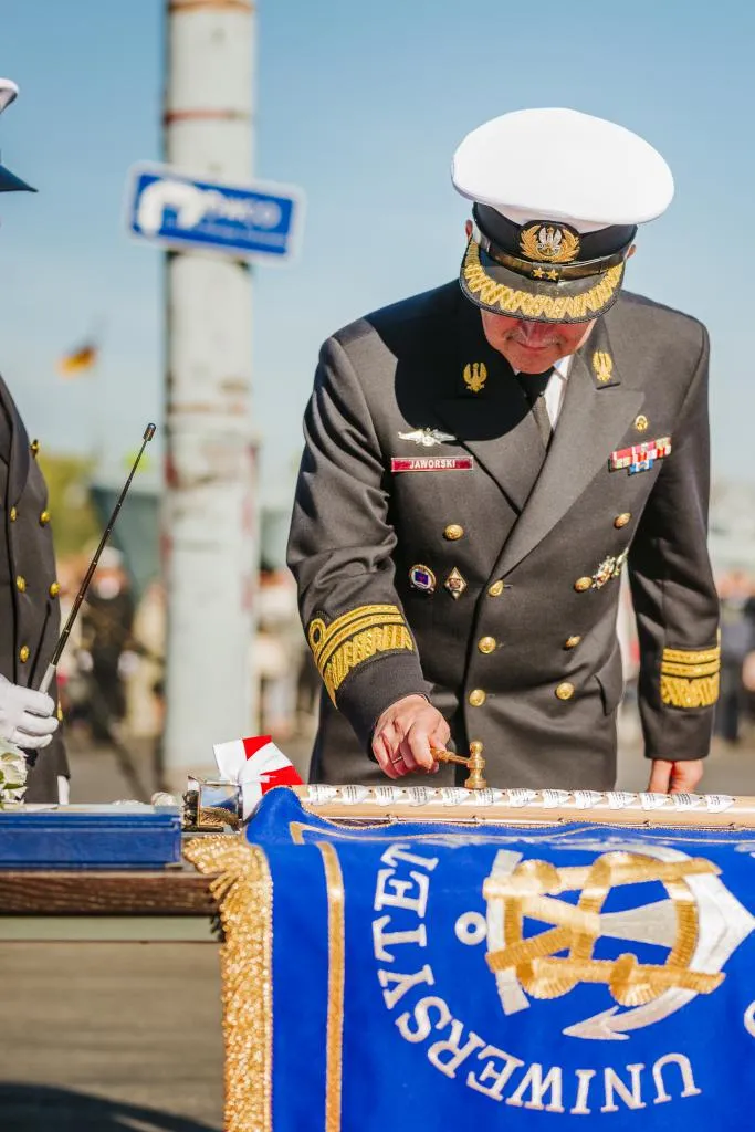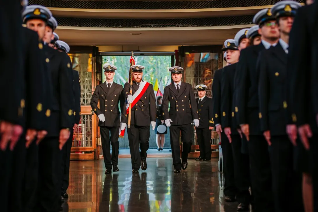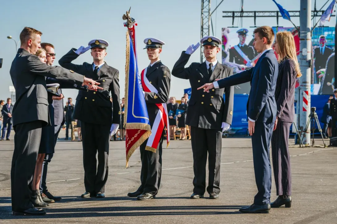 Czworo studentów, którzy uzyskali najlepsze wyniki w czasie rekrutacji, ślubowało – w imieniu wszystkich studentów I roku – na sztandar Uniwersytetu Morskiego w Gdyni. JM Rektor uroczyście pasował na studentów reprezentantów poszczególnych wydziałów.