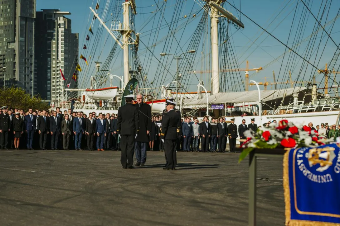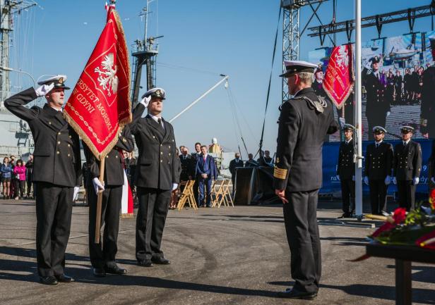 Uroczystość rozpoczęła się złożeniem meldunku Ministrowi Nauki i Szkolnictwa Wyższego Panu Premierowi Jarosławowi Gowinowi oraz Jego Magnificencji Rektorowi prof. dr. hab. inż. Januszowi Zarębskiemu przez Dowódcę Kompanii. Następnie dokonano uroczystego pożegnania Sztandaru Akademii Morskiej w Gdyni, który reprezentował uczelnię przez ostatnie 16 lat.