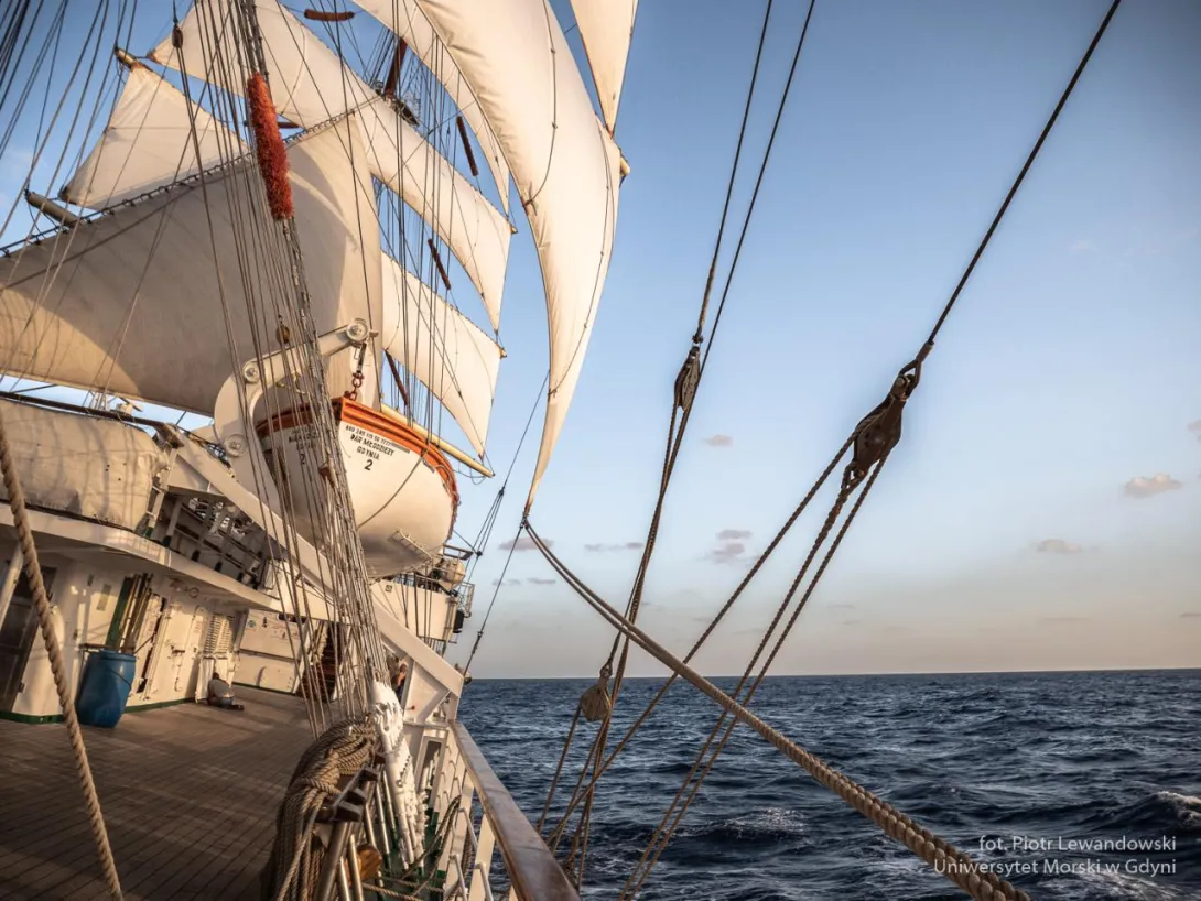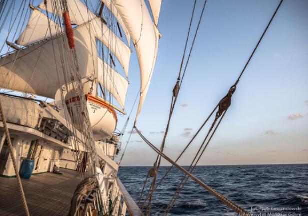 Przedwczoraj nareszcie postawiliśmy żagle. "Dar" znów wyglądał pięknie, na statku nie było słychać naszych „diesli”, a wibracje na rufie ustały. Postawione żagle maja chyba właściwości terapeutyczne - lekko na duszy.
