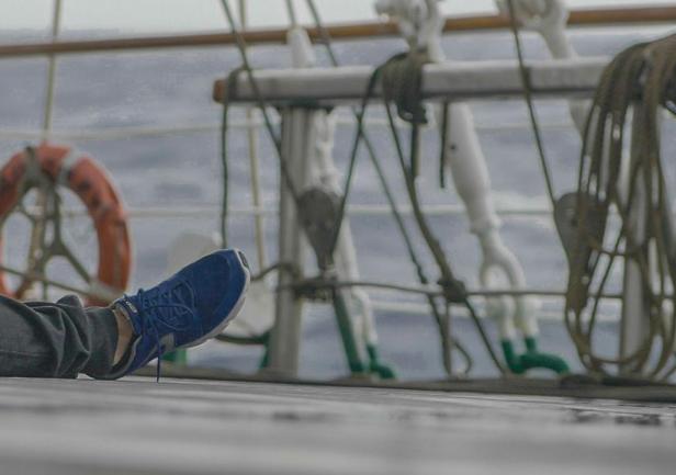 Wczoraj popołudniu ruszyliśmy w stronę Oceanu. Prognoza była pomyślna wiatr do 35 węzłów, słabnący do 26 węzłów. Okazało się jednak, że wieje dużo mocniej, nawet powyżej 60 w. Noc nie była spokojna. Niestety nasz forsztaksel nie wytrzymał próby. Urwał się blok szotów i żagiel się podarł. Wachta III zareagowała błyskawicznie i sprzątnęła żagiel zapobiegając większym uszkodzeniom. Od wczesnych godzin rannych wiatr osłabł, ale wieje dokładnie z kierunku w jakim mamy płynąć, więc pozostaje nam jazda na silniku.