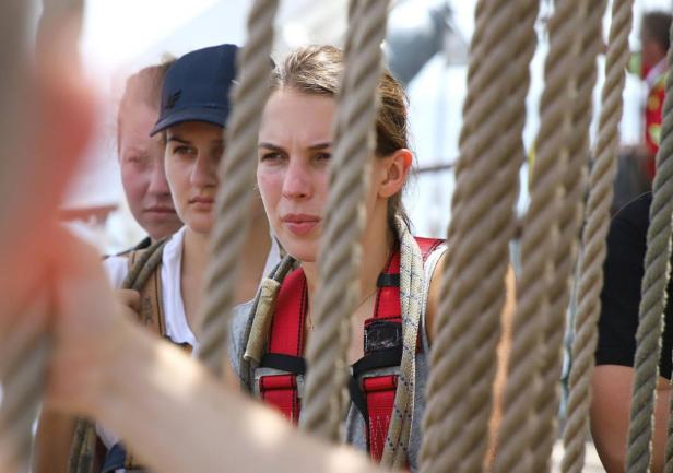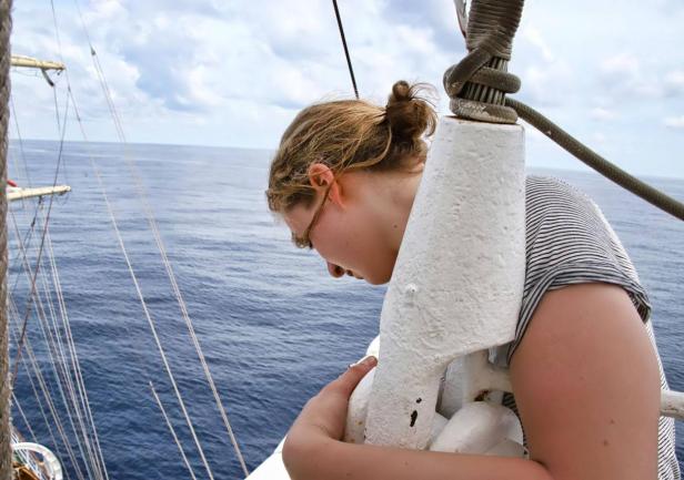 Po 19.00 wszystko było sklarowane, na masztach został tylko zestaw podstawowych żagli: dolne i górne marsle oraz sztaksle. Mam wrażenie, że średni poziom adrenaliny na pokładzie był dużo większy niż przewiduje norma. Praktykanci zmęczeni (czemu skrzętnie zaprzeczali), ale uśmiechnięci, przekonali się, że potrafią więcej niż się spodziewali, a ja, że moja wiara w nich nie była bezpodstawna. Czy ktoś zasłużył na wyróżnienie? Oczywiście, że tak - "team spirit"!