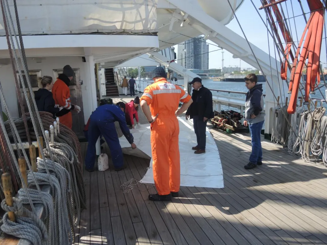 A poza tym na pokładzie normalny ruch - sprzątanie, czyszczenie, klarowanie ....... i wszechobecne ekipy radio-telewizyjno-filmowo-prasowe. Wywiady, pytania, pytania, pytania..... Na szczęście ratownicy z SAR-u są na wyciągnięcie ręki.