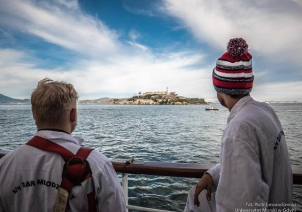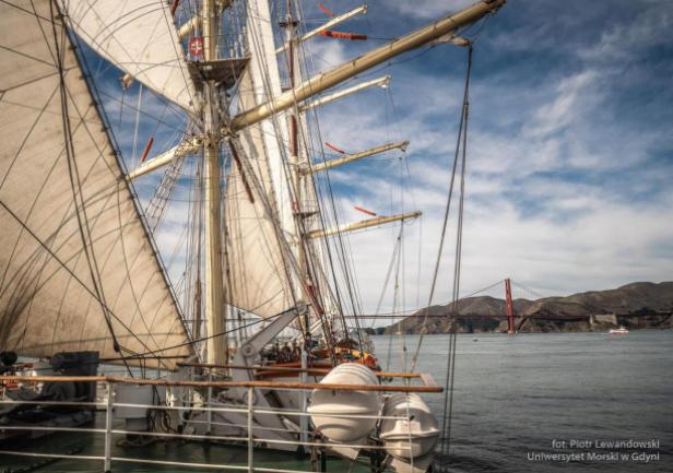 W kilku zdaniach o San Francisco. Nie udało się wejść do Golden Gate na żaglach, szkoda. Na przeszkodzie stanęła amerykańska biurokracja, życie. Na wyjściu udało się nam postawić wszystkie sztaksle i kliwry – chyba całkiem ładnie wyglądało.