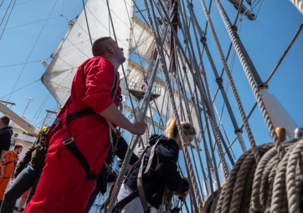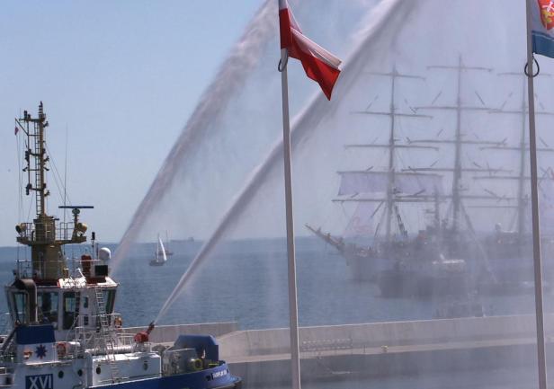 Piękno miasta zrekompensowało trochę brak żeglarskich emocji. Dwa dni pobytu spędziliśmy na zwiedzaniu stolicy Estonii, której niepowtarzalny klimat zachwycił wszystkich. Żaglowiec podejmował na pokładzie także gości oficjalnych. W piątek (25.05.) odwiedził nas minister Gospodarki Morskiej i Żeglugi Śródlądowej Marek Gróbarczyk, a w sobotę żegnał statek minister Obrony Narodowej Mariusz Błaszczak. Wcześniej, w piątkowy wieczór, delegacja statkowa uczestniczyła w złożeniu wieńca przy płycie upamiętniającej załogę ORP "Orzeł", która w 1939 r. brawurowo wymknęła się z internowania w Tallinie.