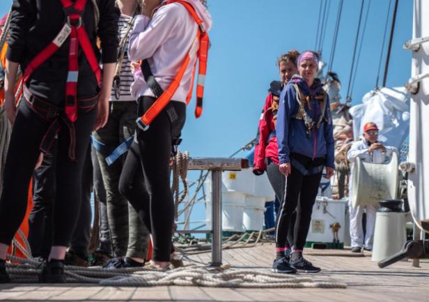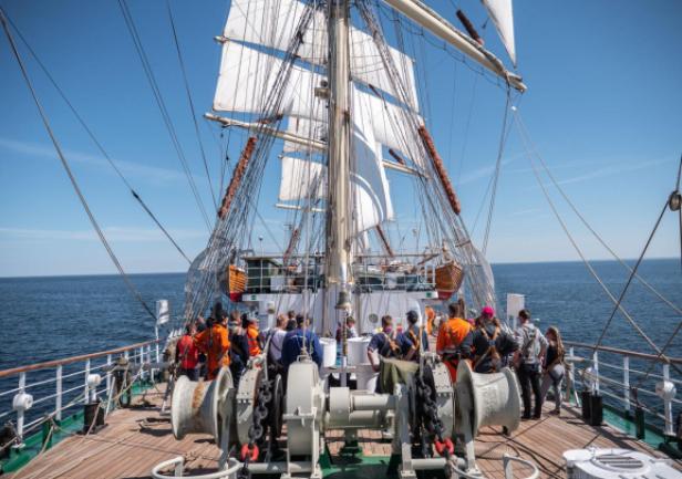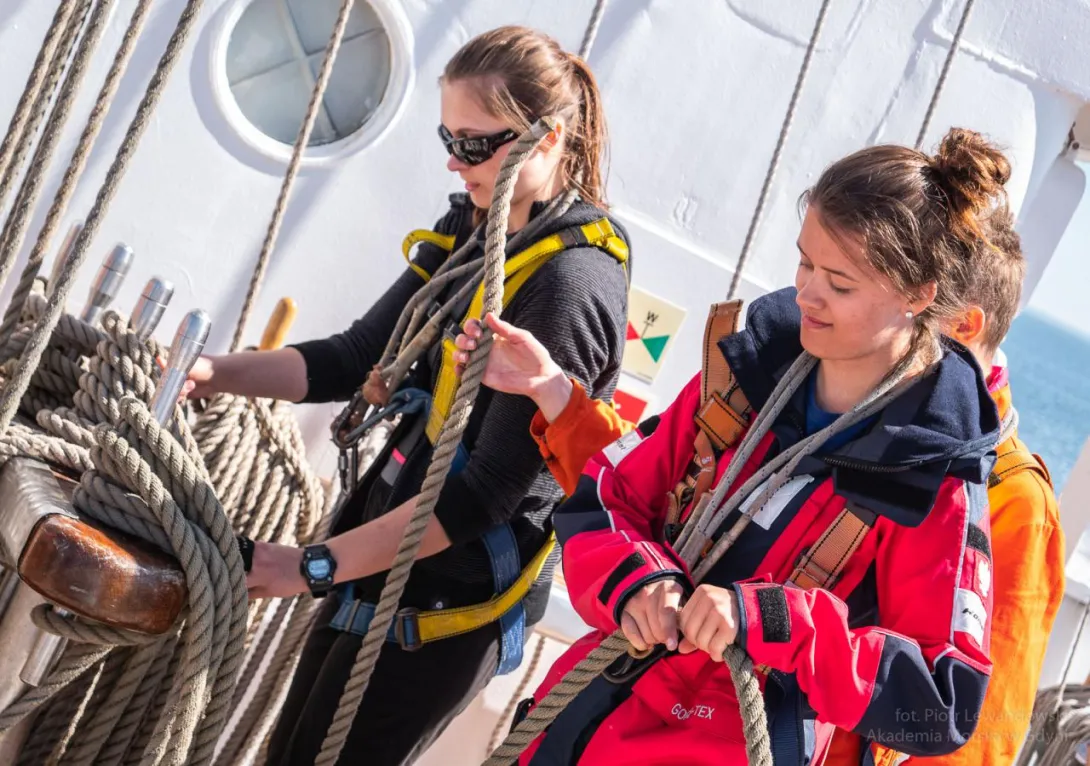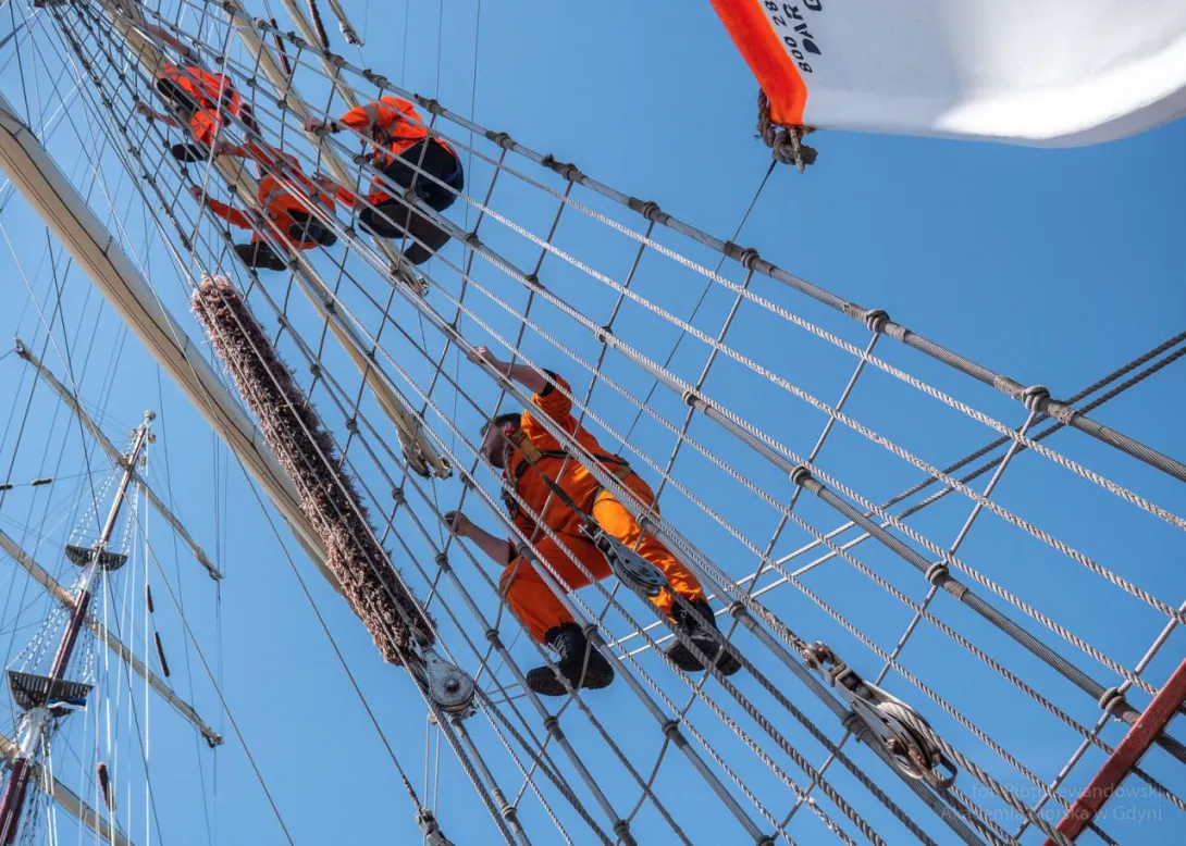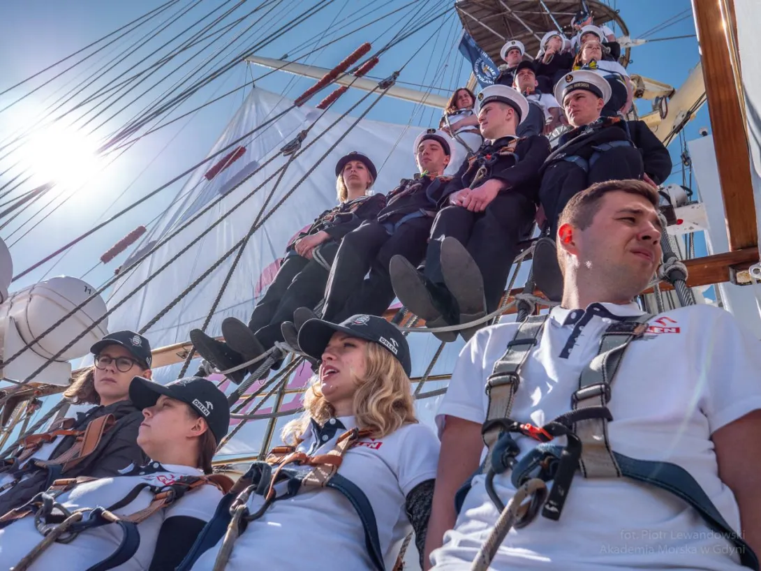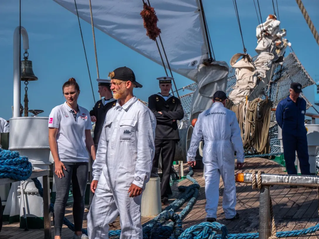 Po słonecznym pożegnaniu z Gdynią, podobną pogodą powitał nas Bałtyk. Słonecznie i bezwietrznie. Rzadko można o tym czasie spotkać tak spokojne morze. Zatem proces oswajania się z morzem przebiegał bez dramatów. Młodzież z zapałem rozpoczęła szkolenie. Ćwiczono wchodzenie na maszty, brasowanie, klarowanie żagli. Praktykanci - zarówno uczniowie techników morskich ze Szczecina i Świnoujścia, jak i laureaci konkursu - uczyli się rozkładu i nazw lin. Odbyto ćwiczebny alarm opuszczenia jednostki, alarm przeciwpożarowy i alarm człowiek za burtą, podczas którego chętni pływali wokół statku szalupą. Równocześnie młodzież pełniła wachty, podczas których wykonywała rutynowe prace konserwacyjne i pełniła służbę na mostku. Tęskniliśmy jedynie za wiatrem, który pojawił się w chwili gdy byliśmy ... na podejściu do Tallina!