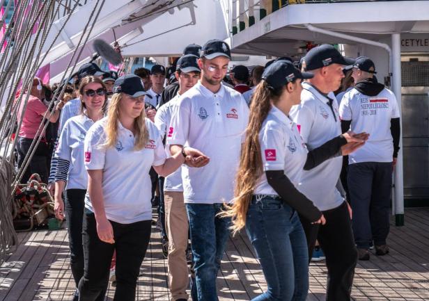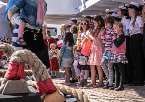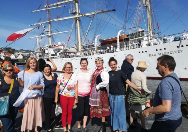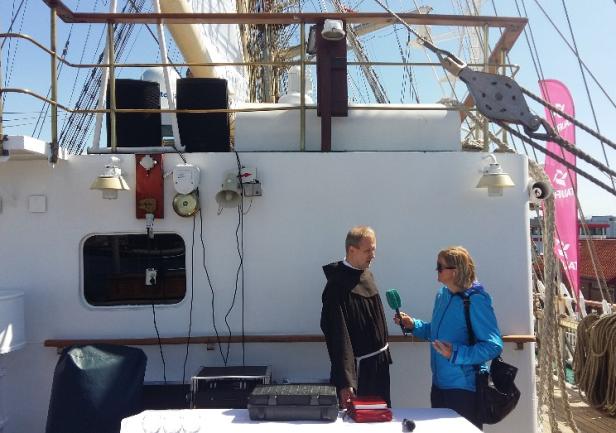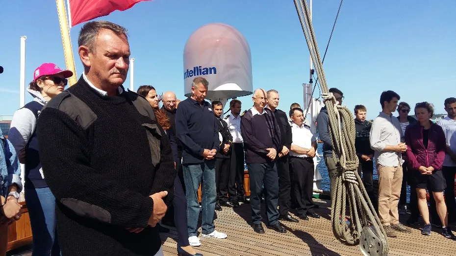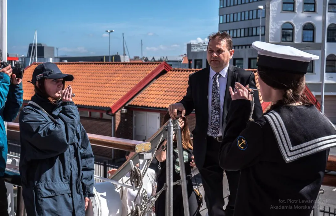 Pierwszą osobą, która weszła na pokład była przewodnicząca Towarzystwa Polsko-Norweskiego w Stavanger pani Beata Peksyk. W imieniu Ambasador RP w Norwegii powitał statek radca-minister Marian Siemakowicz.