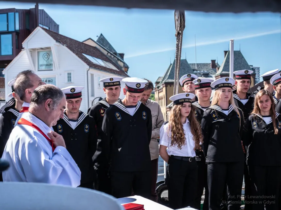 Następnego dnia, przed południem, na rufie odbyła się msza święta z udziałem członków załogi, praktykantów i przedstawicieli Polonii, koncelebrowana przez o. Jerzego Limanówkę z fundacji Salvatii – współorganizatora rejsu, i miejscowego duchownego o. Elizeusza. Ksiądz Limanówka dziękował Polakom za podtrzymywanie polskiej tradycji w Stavanger, na norweskiej ziemi.