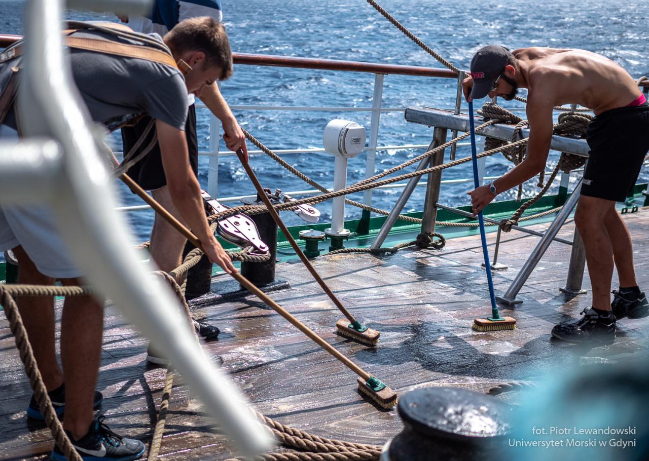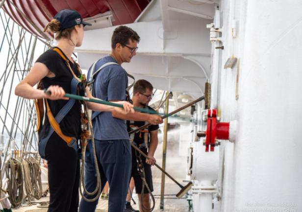 Przed portem statek wymaga wielu zabiegów kosmetycznych – nie przypadkiem w języku angielskim „ship” to „she”. Pokłady są dokładnie szorowane, mosiądze polerowane, a reprezentacyjne pomieszczenia gruntownie sprzątane. Na "Darze Pomorza" najtrudniejszym zadaniem było polerowanie osłon świateł burtowych - nie zapomnę tej żmudnej pracy.