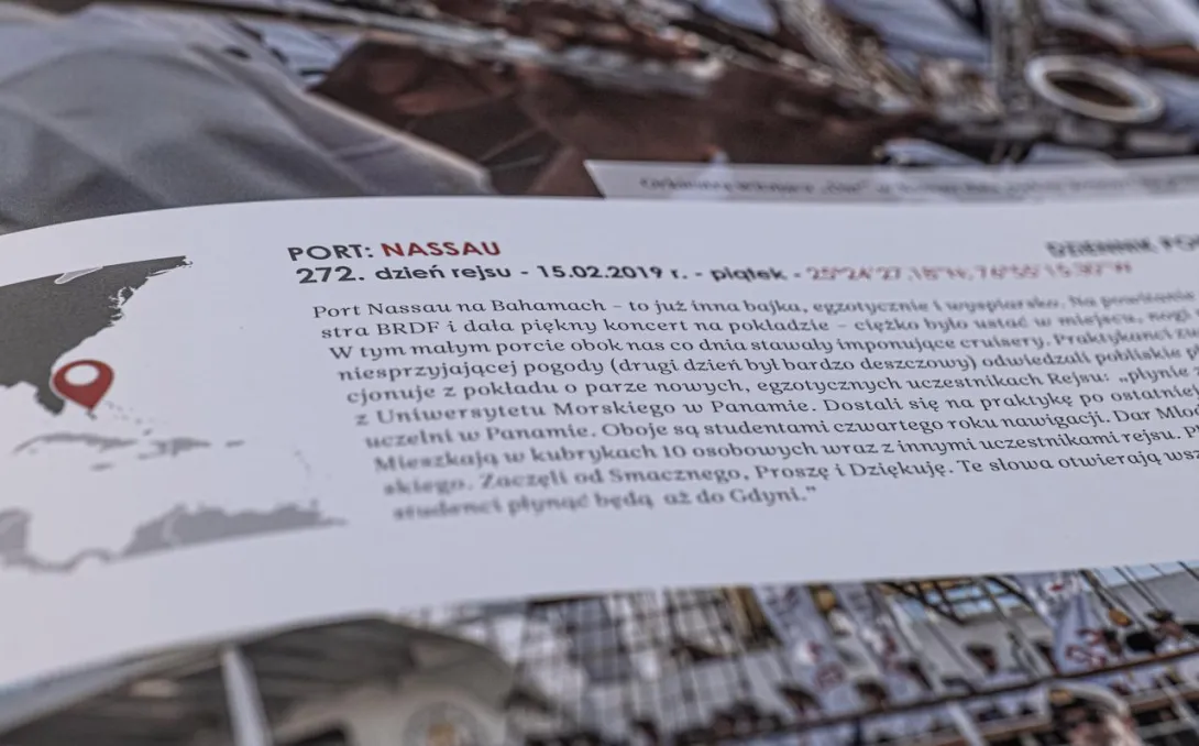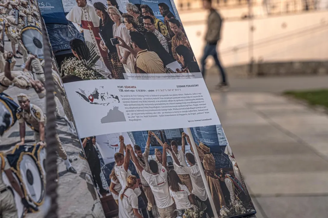 A piece of sail, a letter from the Pope and the unique photos from the “The Independence Sail” journey that ended on May  28th 2019 can all be seen in the album „Podróż Daru Młodzieży dookoła świata”. This journey around the world is the second in Dar Młodzieży history. The first one took place in 1987/1988 on the occasion of the 200th anniversary of Australia’s colonization by European citizens.