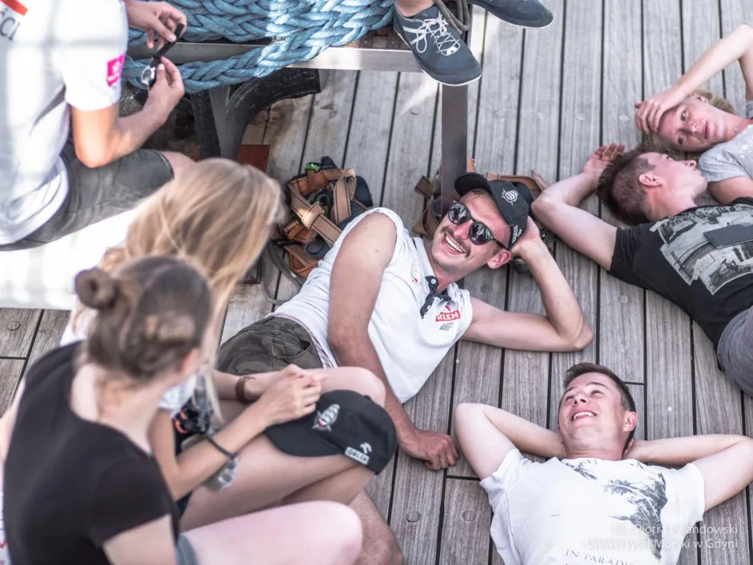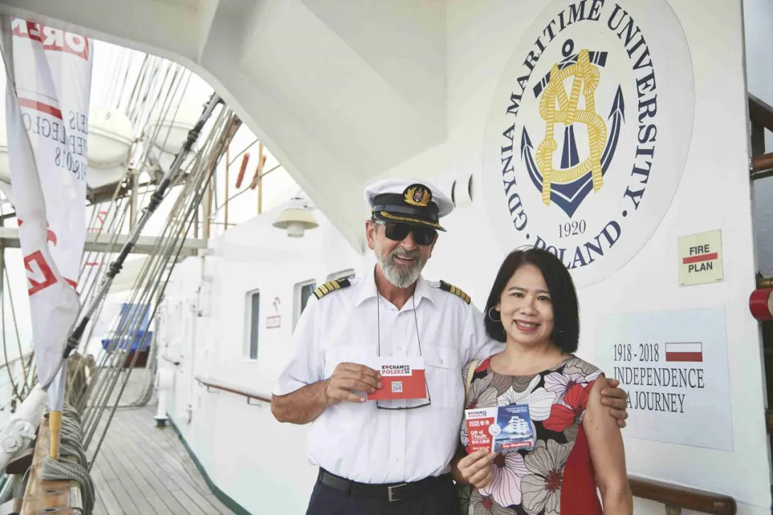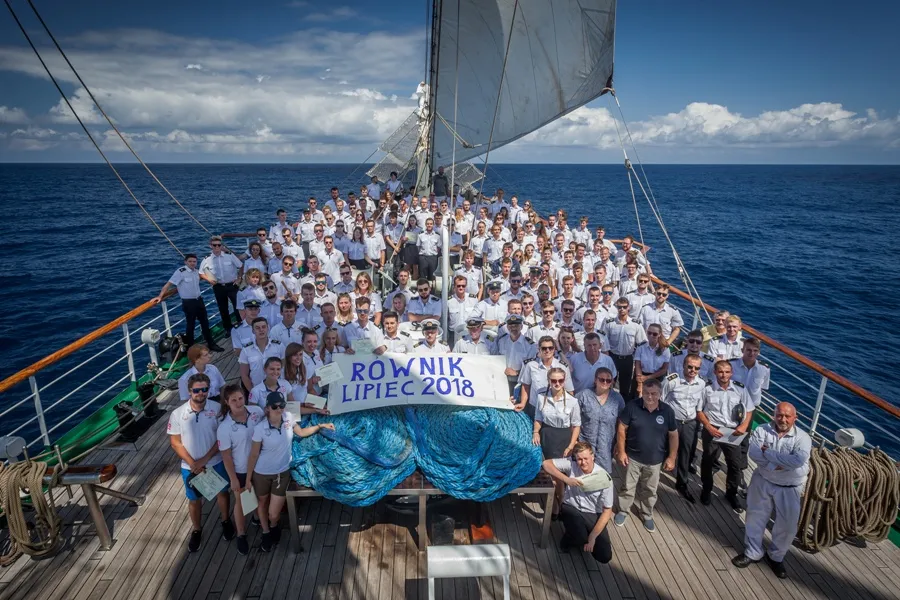 W podróży uczestniczyło 948 członków załogi szkolnej w tym: 539 studentów UMG (212 WN, 185 WM, 52 WE), 61 ucznió średnich szkół morskich (32 ZSM Świnoujście, 29 ZCEMiP Szczecin) - w sumie 600 uczestników dla których udział w kolejnych etapach rejsu stanowił obowiązkową praktykę morską oraz 348 laureatów konkursu Rejs Niepodległości; zmieniali się również członkowie załogi stałej - w sumie płynęło ich 77; na trasie Gdynia - Singapur komendantem był kpt.ż.w. Ireneusz Lewandowski, którego zmienił kpt.ż.w. Rafał Szymański, doprowadzając żaglowiec do Gdyni.