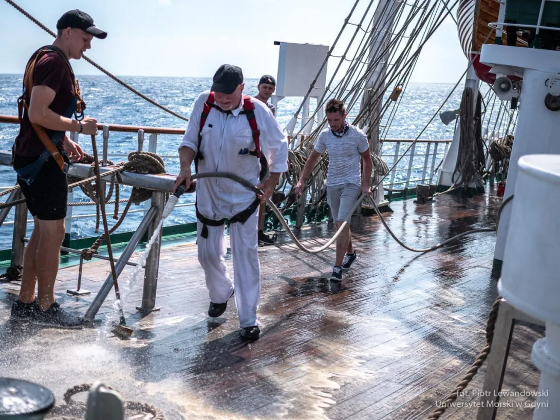 Oczywiście wymienione wcześniej czynności gospodarskie są również wykonywane w morzu. Co dobę przejmuje je inna wachta – kilkanaście osób jest wyłączonych z normalnego trybu i pracują w wyznaczonym miejscu.