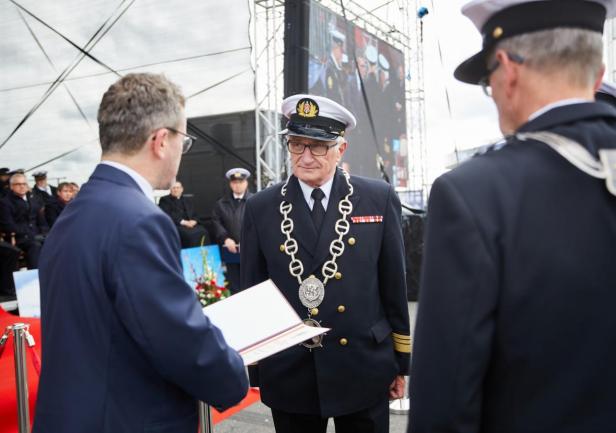 Oficjalna część uroczystości na Molo Południowym rozpoczęła się złożeniem meldunku Panu Grzegorzowi Witkowskiemu – Podsekretarzowi Stanu w Ministerstwie Gospodarki Morskiej i Żeglugi Śródlądowej oraz Jego Magnificencji Rektorowi prof. dr. hab. inż. Januszowi Zarębskiemu przez Dowódcę Uroczystości. Następnie, na znak włączenia Instytutu Morskiego w Gdańsku w strukturę Uniwersytetu Morskiego w Gdyni, Jego Magnificencja Rektor prof. dr hab. inż. Janusz Zarębski przekazał Dyrektorowi Instytutu Morskiego Panu prof. Maciejowi Matczakowi insygnium symbolizujące godność urzędu oraz przynależność do społeczności Uniwersytetu Morskiego w Gdyni. Z tej okazji podpisany został uroczysty akt nadania insygnium.